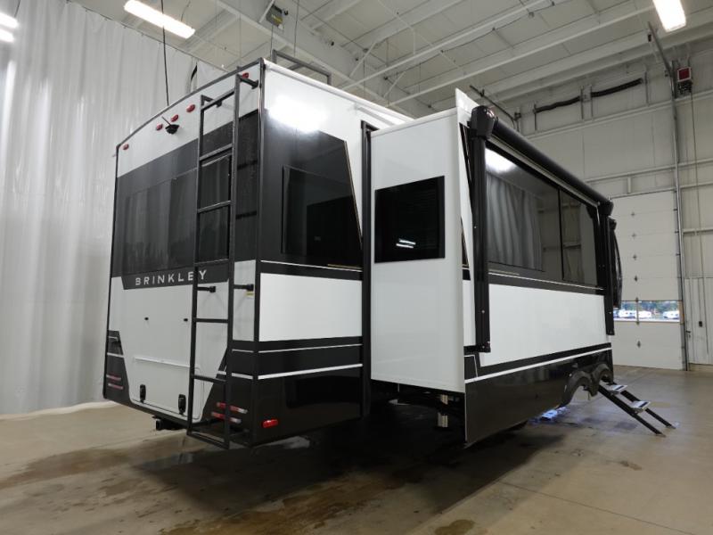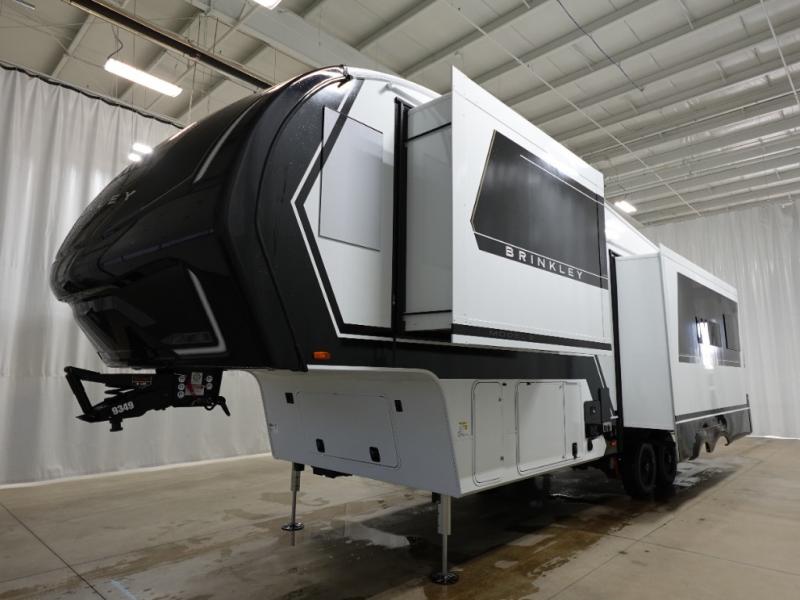 The Brinkley mid-profile Model Z fifth wheels bring you clean lines and an upscale look with plenty of style and exciting new features like the industry first brass plumbing connections. These units also feature an automotive grade front cap, plenty of exterior storage, dual exterior hot and cold showers, and wide stance leveling jacks for easy set up. Residential frameless windows provide a clean look and beautiful views, and ample electrical outlets and USB/USB-C outlets allow all of your electronics and appliances to easily be used and charged.