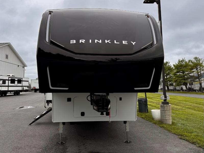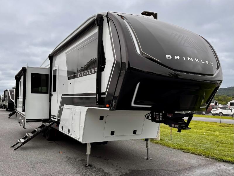 The Brinkley mid-profile Model Z fifth wheels bring you clean lines and an upscale look with plenty of style and exciting new features like the industry first brass plumbing connections. These units also feature an automotive grade front cap, plenty of exterior storage, dual exterior hot and cold showers, and wide stance leveling jacks for easy set up. Residential frameless windows provide a clean look and beautiful views, and ample electrical outlets and USB/USB-C outlets allow all of your electronics and appliances to easily be used and charged.