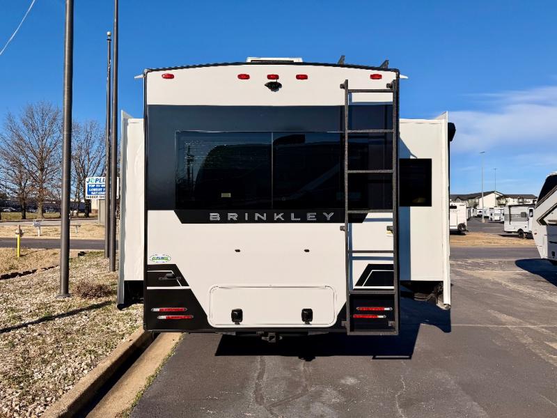 The Brinkley mid-profile Model Z fifth wheels bring you clean lines and an upscale look with plenty of style and exciting new features like the industry first brass plumbing connections. These units also feature an automotive grade front cap, plenty of exterior storage, dual exterior hot and cold showers, and wide stance leveling jacks for easy set up. Residential frameless windows provide a clean look and beautiful views, and ample electrical outlets and USB/USB-C outlets allow all of your electronics and appliances to easily be used and charged.