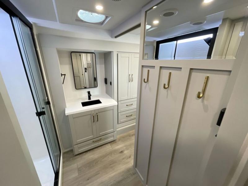 The Brinkley mid-profile Model Z fifth wheels bring you clean lines and an upscale look with plenty of style and exciting new features like the industry first brass plumbing connections. These units also feature an automotive grade front cap, plenty of exterior storage, dual exterior hot and cold showers, and wide stance leveling jacks for easy set up. Residential frameless windows provide a clean look and beautiful views, and ample electrical outlets and USB/USB-C outlets allow all of your electronics and appliances to easily be used and charged.