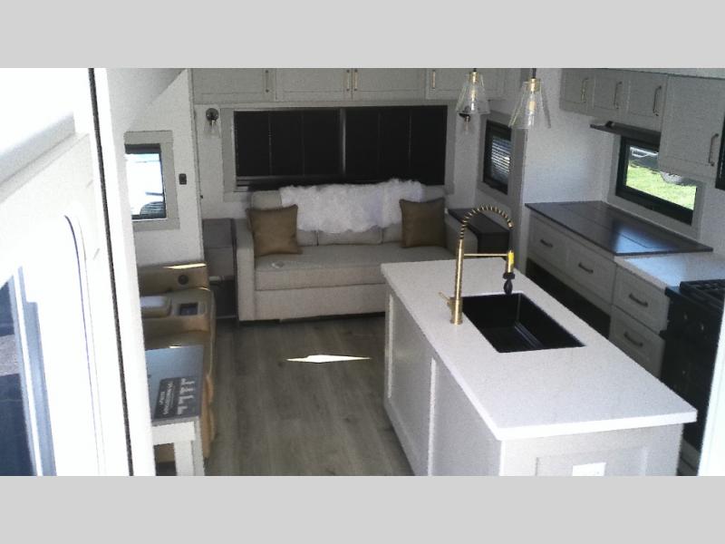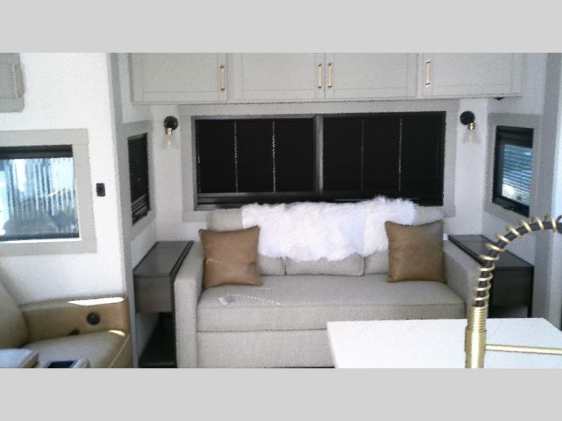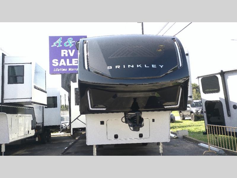 The Brinkley mid-profile Model Z fifth wheels bring you clean lines and an upscale look with plenty of style and exciting new features like the industry first brass plumbing connections. These units also feature an automotive grade front cap, plenty of exterior storage, dual exterior hot and cold showers, and wide stance leveling jacks for easy set up. Residential frameless windows provide a clean look and beautiful views, and ample electrical outlets and USB/USB-C outlets allow all of your electronics and appliances to easily be used and charged.