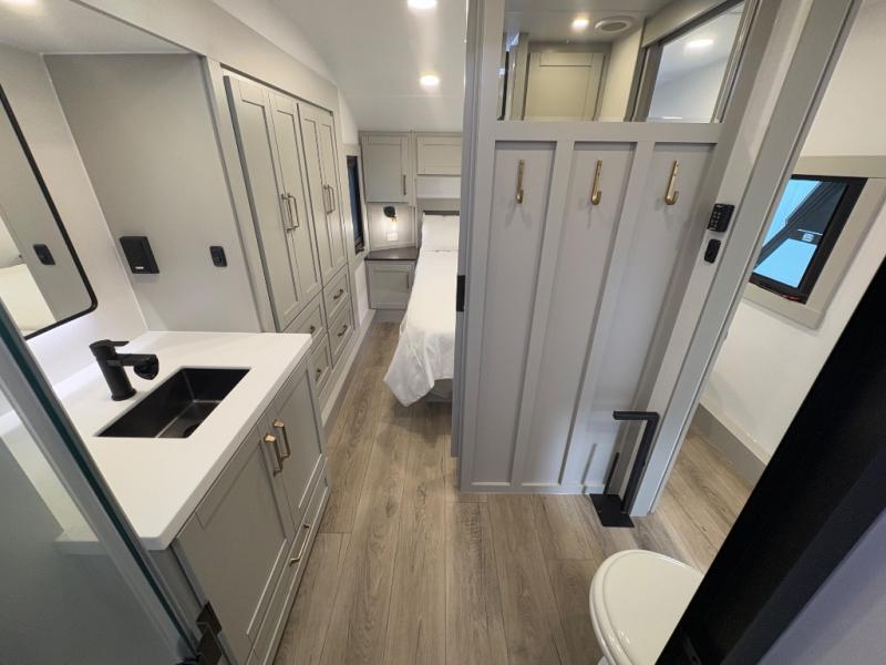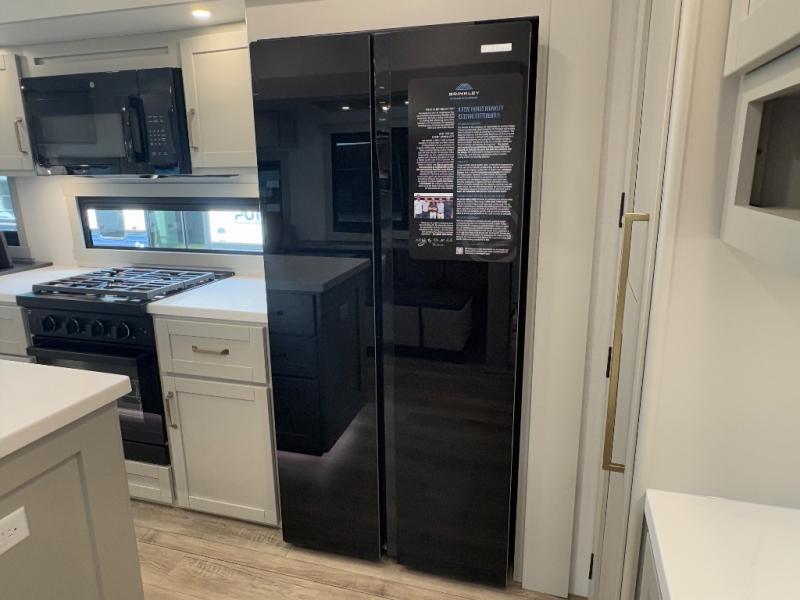 The Brinkley mid-profile Model Z fifth wheels bring you clean lines and an upscale look with plenty of style and exciting new features like the industry first brass plumbing connections. These units also feature an automotive grade front cap, plenty of exterior storage, dual exterior hot and cold showers, and wide stance leveling jacks for easy set up. Residential frameless windows provide a clean look and beautiful views, and ample electrical outlets and USB/USB-C outlets allow all of your electronics and appliances to easily be used and charged.