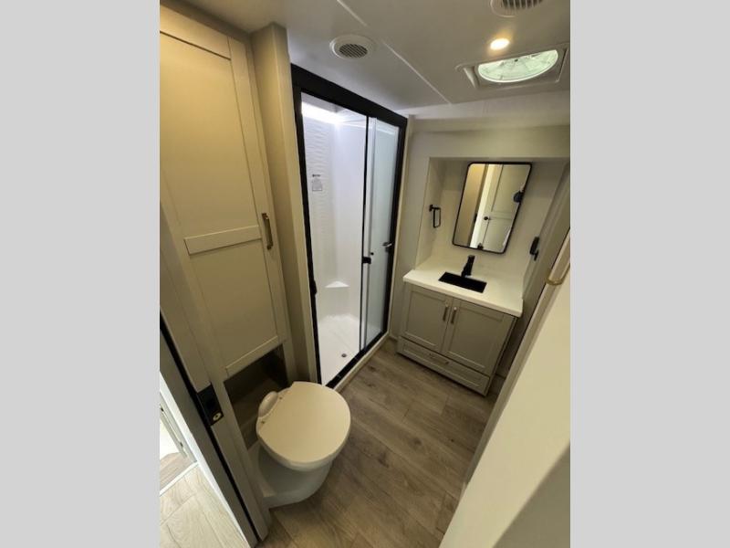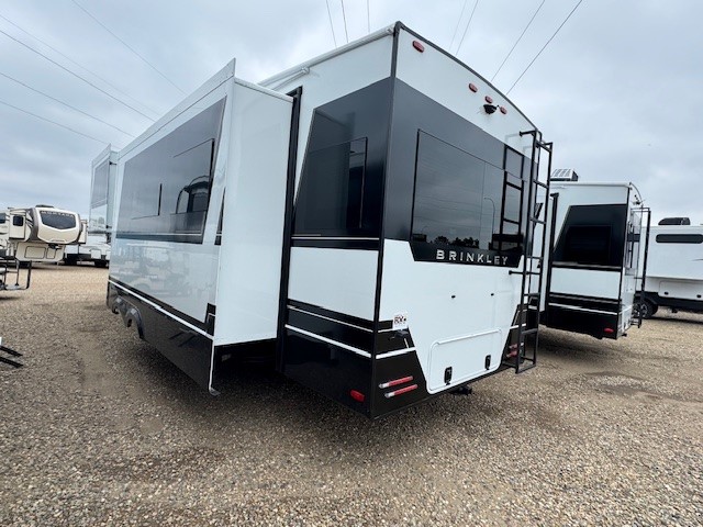 The Brinkley mid-profile Model Z fifth wheels bring you clean lines and an upscale look with plenty of style and exciting new features like the industry first brass plumbing connections. These units also feature an automotive grade front cap, plenty of exterior storage, dual exterior hot and cold showers, and wide stance leveling jacks for easy set up. Residential frameless windows provide a clean look and beautiful views, and ample electrical outlets and USB/USB-C outlets allow all of your electronics and appliances to easily be used and charged.