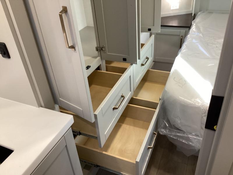 Automotive-grade front cap, frameless Euro windows, wide-stance leveling jacks, and LED chassis lighting give it that refined edge—with performance to back it up. -