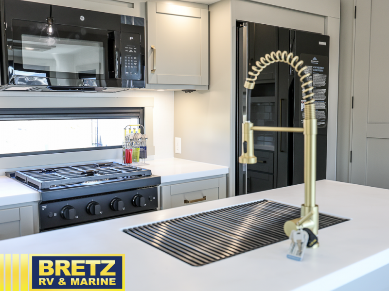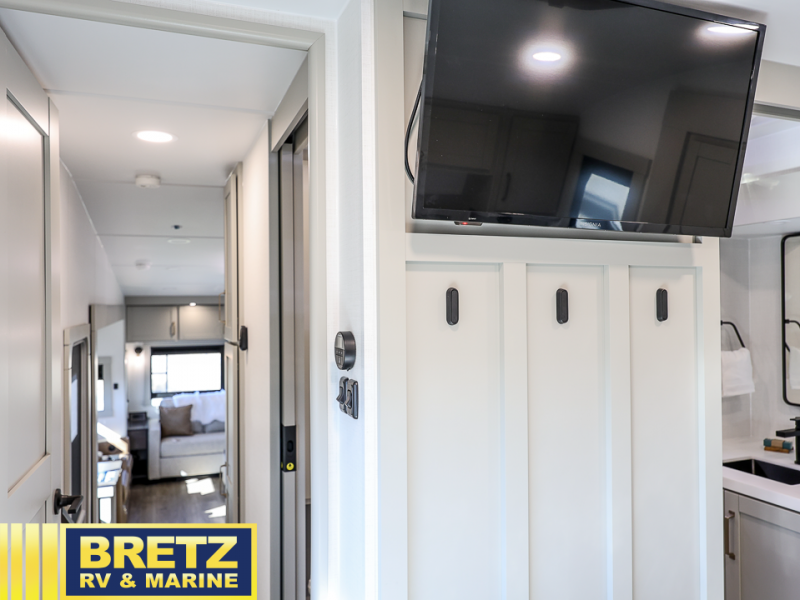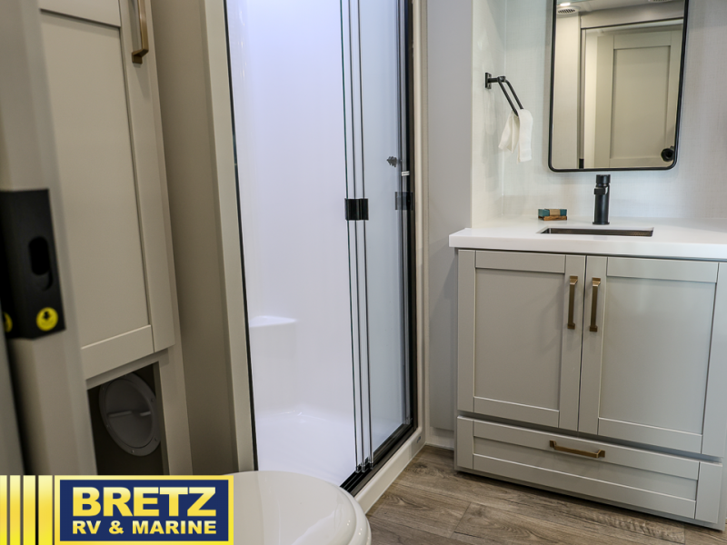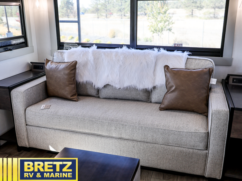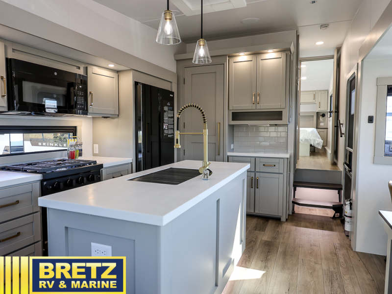 The Brinkley mid-profile Model Z fifth wheels bring you clean lines and an upscale look with plenty of style and exciting new features like the industry first brass plumbing connections. These units also feature an automotive grade front cap, plenty of exterior storage, dual exterior hot and cold showers, and wide stance leveling jacks for easy set up. Residential frameless windows provide a clean look and beautiful views, and ample electrical outlets and USB/USB-C outlets allow all of your electronics and appliances to easily be used and charged.