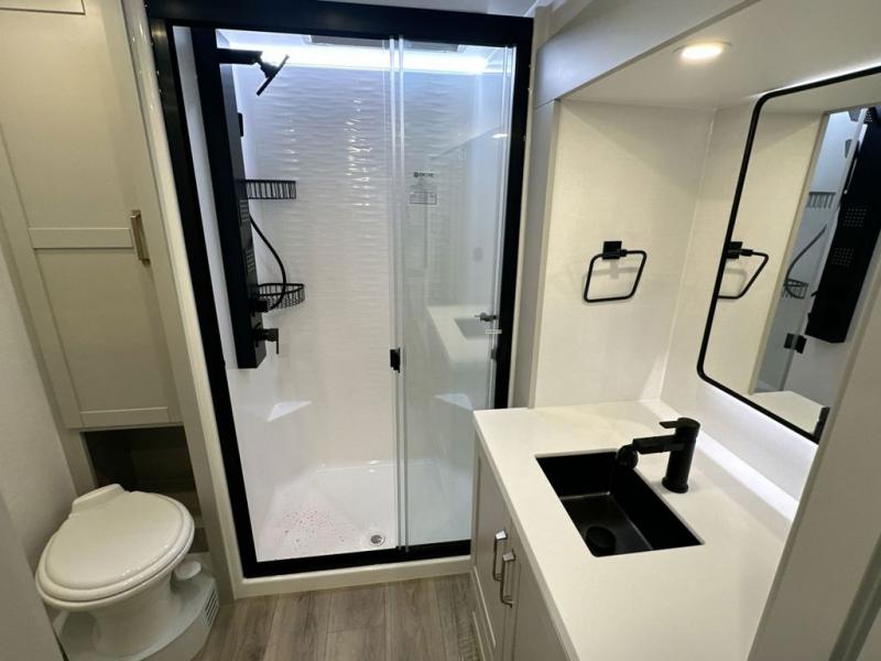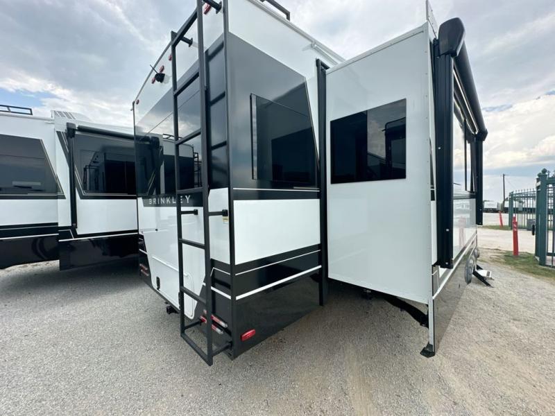 The Brinkley mid-profile Model Z fifth wheels bring you clean lines and an upscale look with plenty of style and exciting new features like the industry first brass plumbing connections. These units also feature an automotive grade front cap, plenty of exterior storage, dual exterior hot and cold showers, and wide stance leveling jacks for easy set up. Residential frameless windows provide a clean look and beautiful views, and ample electrical outlets and USB/USB-C outlets allow all of your electronics and appliances to easily be used and charged.