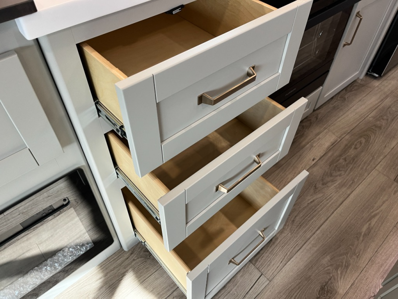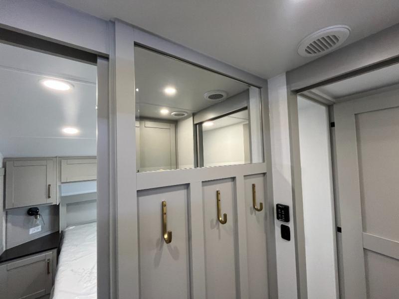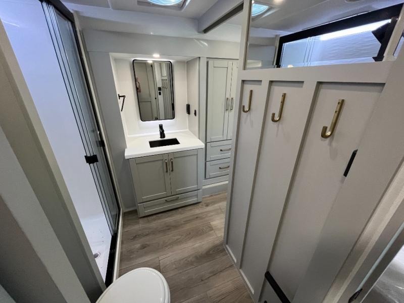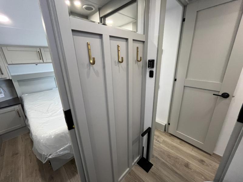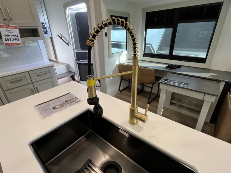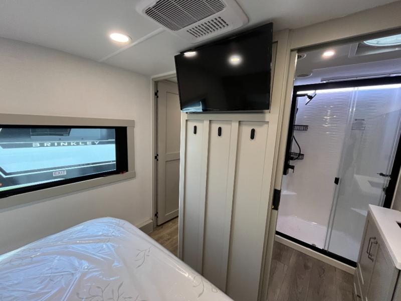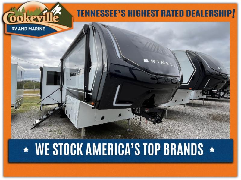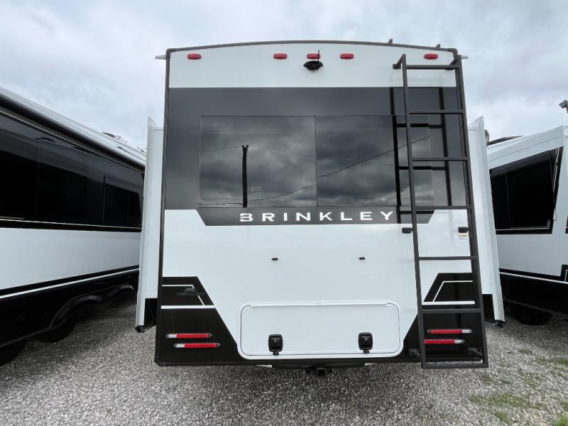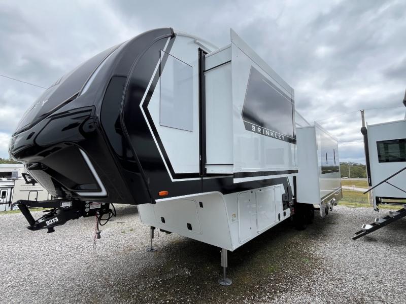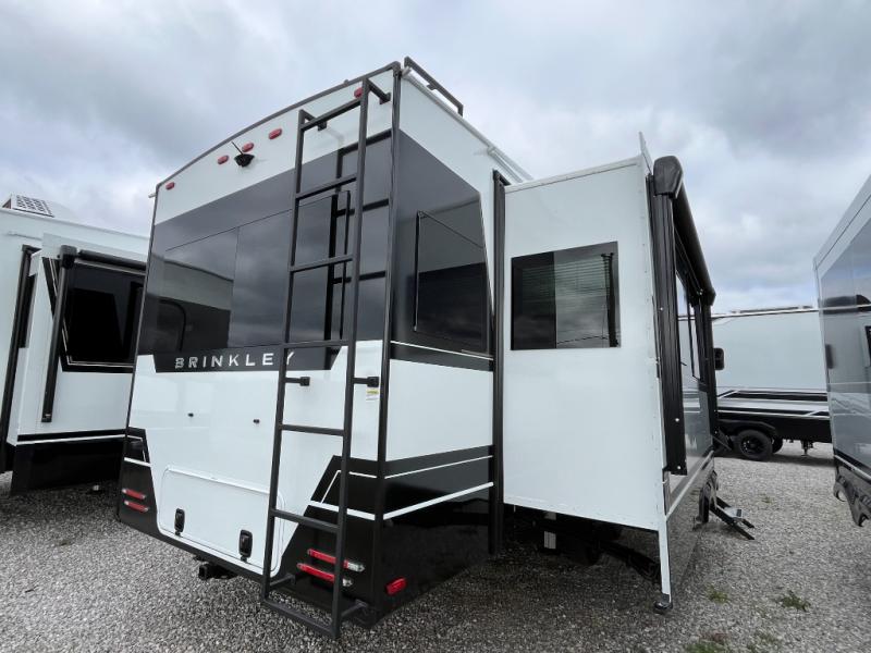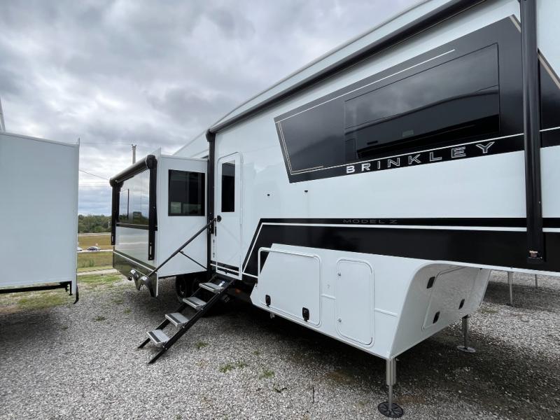 The Brinkley mid-profile Model Z fifth wheels bring you clean lines and an upscale look with plenty of style and exciting new features like the industry first brass plumbing connections. These units also feature an automotive grade front cap, plenty of exterior storage, dual exterior hot and cold showers, and wide stance leveling jacks for easy set up. Residential frameless windows provide a clean look and beautiful views, and ample electrical outlets and USB/USB-C outlets allow all of your electronics and appliances to easily be used and charged.