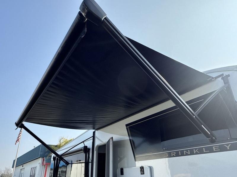 The Brinkley mid-profile Model Z fifth wheels bring you clean lines and an upscale look with plenty of style and exciting new features like the industry first brass plumbing connections. These units also feature an automotive grade front cap, plenty of exterior storage, dual exterior hot and cold showers, and wide stance leveling jacks for easy set up. Residential frameless windows provide a clean look and beautiful views, and ample electrical outlets and USB/USB-C outlets allow all of your electronics and appliances to easily be used and charged.