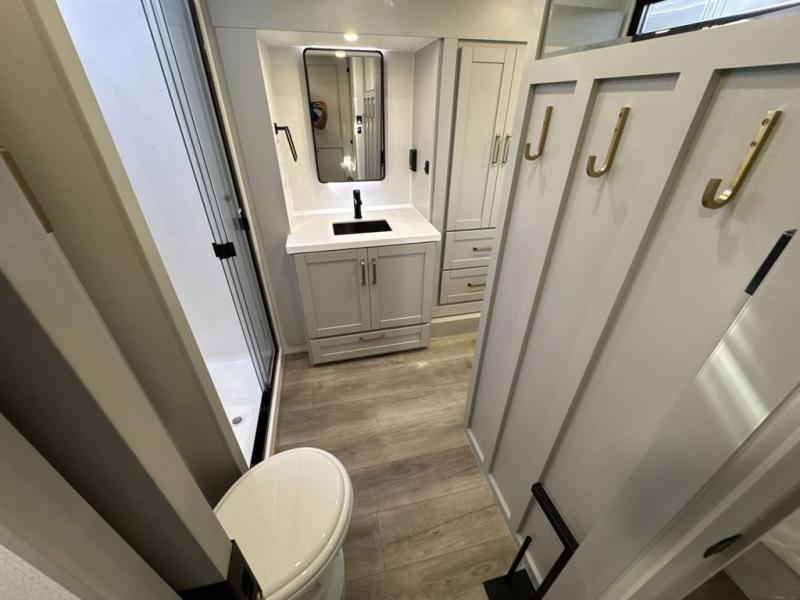 The Brinkley mid-profile Model Z fifth wheels bring you clean lines and an upscale look with plenty of style and exciting new features like the industry first brass plumbing connections. These units also feature an automotive grade front cap, plenty of exterior storage, dual exterior hot and cold showers, and wide stance leveling jacks for easy set up. Residential frameless windows provide a clean look and beautiful views, and ample electrical outlets and USB/USB-C outlets allow all of your electronics and appliances to easily be used and charged.