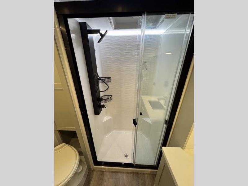 The Brinkley mid-profile Model Z fifth wheels bring you clean lines and an upscale look with plenty of style and exciting new features like the industry first brass plumbing connections. These units also feature an automotive grade front cap, plenty of exterior storage, dual exterior hot and cold showers, and wide stance leveling jacks for easy set up. Residential frameless windows provide a clean look and beautiful views, and ample electrical outlets and USB/USB-C outlets allow all of your electronics and appliances to easily be used and charged.