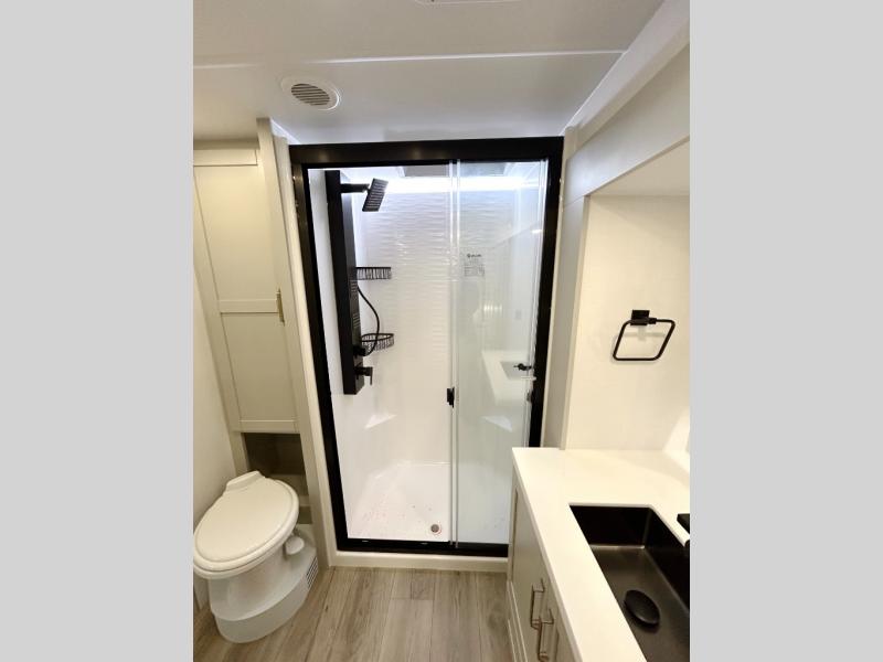 The Brinkley mid-profile Model Z fifth wheels bring you clean lines and an upscale look with plenty of style and exciting new features like the industry first brass plumbing connections. These units also feature an automotive grade front cap, plenty of exterior storage, dual exterior hot and cold showers, and wide stance leveling jacks for easy set up. Residential frameless windows provide a clean look and beautiful views, and ample electrical outlets and USB/USB-C outlets allow all of your electronics and appliances to easily be used and charged.