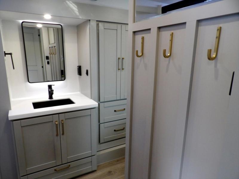 The Brinkley mid-profile Model Z fifth wheels bring you clean lines and an upscale look with plenty of style and exciting new features like the industry first brass plumbing connections. These units also feature an automotive grade front cap, plenty of exterior storage, dual exterior hot and cold showers, and wide stance leveling jacks for easy set up. Residential frameless windows provide a clean look and beautiful views, and ample electrical outlets and USB/USB-C outlets allow all of your electronics and appliances to easily be used and charged.