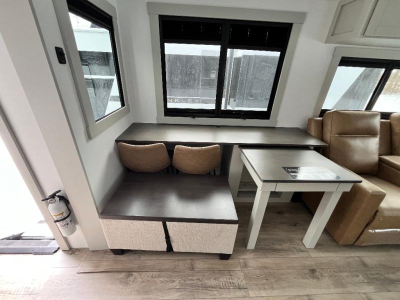 The Brinkley mid-profile Model Z fifth wheels bring you clean lines and an upscale look with plenty of style and exciting new features like the industry first brass plumbing connections. These units also feature an automotive grade front cap, plenty of exterior storage, dual exterior hot and cold showers, and wide stance leveling jacks for easy set up. Residential frameless windows provide a clean look and beautiful views, and ample electrical outlets and USB/USB-C outlets allow all of your electronics and appliances to easily be used and charged.