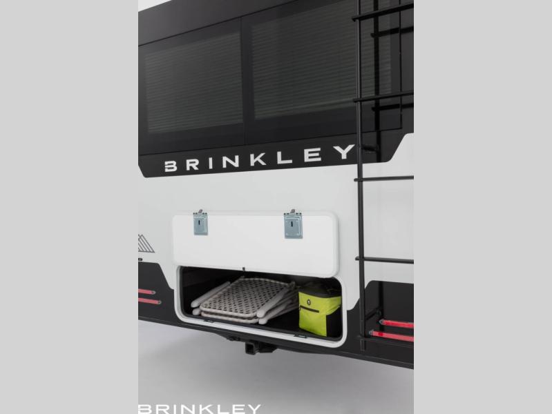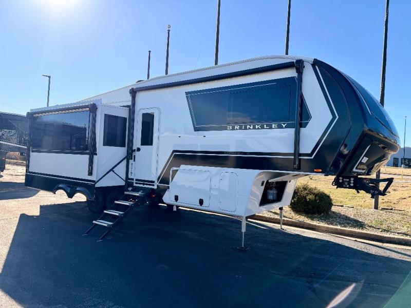 The Brinkley mid-profile Model Z fifth wheels bring you clean lines and an upscale look with plenty of style and exciting new features like the industry first brass plumbing connections. These units also feature an automotive grade front cap, plenty of exterior storage, dual exterior hot and cold showers, and wide stance leveling jacks for easy set up. Residential frameless windows provide a clean look and beautiful views, and ample electrical outlets and USB/USB-C outlets allow all of your electronics and appliances to easily be used and charged.