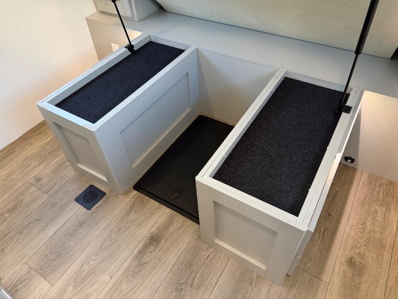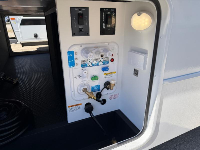 With any Model Z Air travel trailer by Brinkley, you will enjoy premium features at every turn. The industry-first low maintenance roof is sure to be appreciated, plus there are industry-first brass plumbing connections for excellent resistance to corrosion. The drop-frame chassis with ample exterior storage will allow you to bring along camp gear galore, plus there are motion lighting and power outlets for added convenience! You'll also find two hot/cold showers outdoors, along with a 370-watt solar panel, a custom LP box with locked battery storage, and a premium utility center with a retractable 65' water hose to wash off mud from the lake. The interior is just as accommodating with its solid surface countertops, Brinkley CraftSense wood trim construction, integrated window screens and insulated blackout blinds, and the list of luxury features goes on!