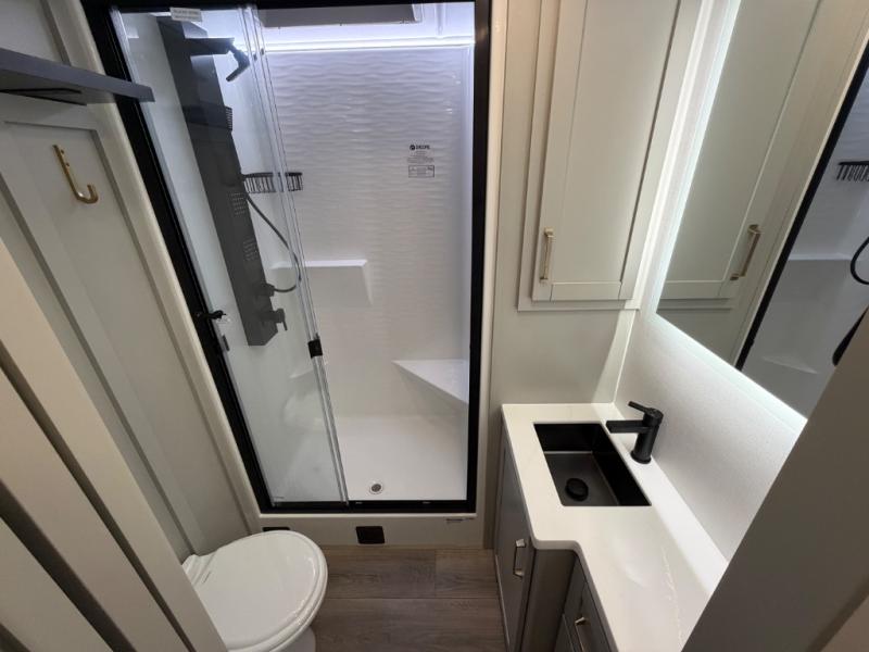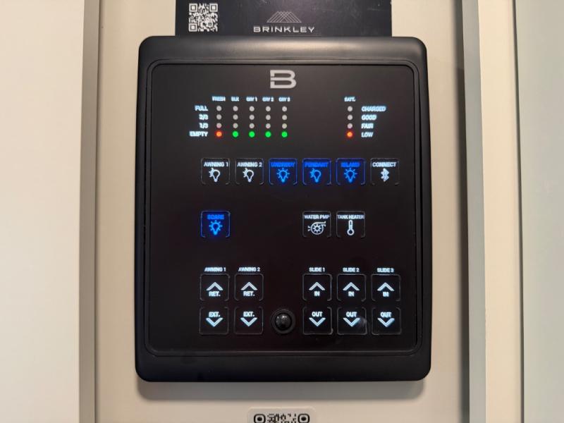 With any Model Z Air travel trailer by Brinkley, you will enjoy premium features at every turn. The industry-first low maintenance roof is sure to be appreciated, plus there are industry-first brass plumbing connections for excellent resistance to corrosion. The drop-frame chassis with a massive pass-through bay will allow you to bring along camp gear galore, plus there are motion lighting and power outlets for added convenience! You'll also find two hot/cold showers outdoors, along with a 370-watt solar panel and a premium utility center with a retractable 65' water hose to wash off mud from the lake. The interior is just as accommodating with its solid surface countertops, Brinkley CraftSense wood trim construction, integrated blackout window shades, and the list of luxury features goes on!