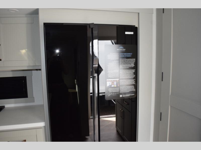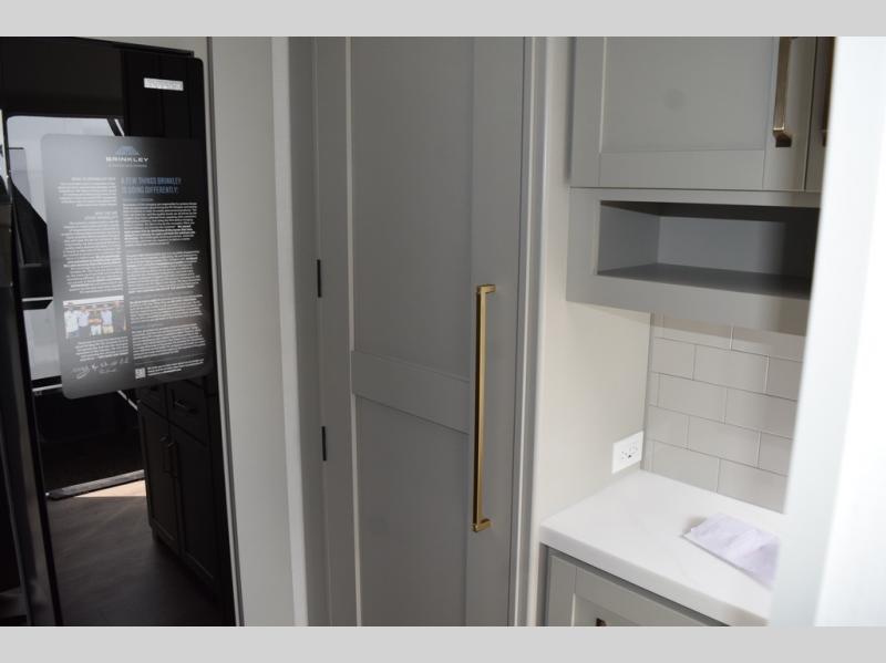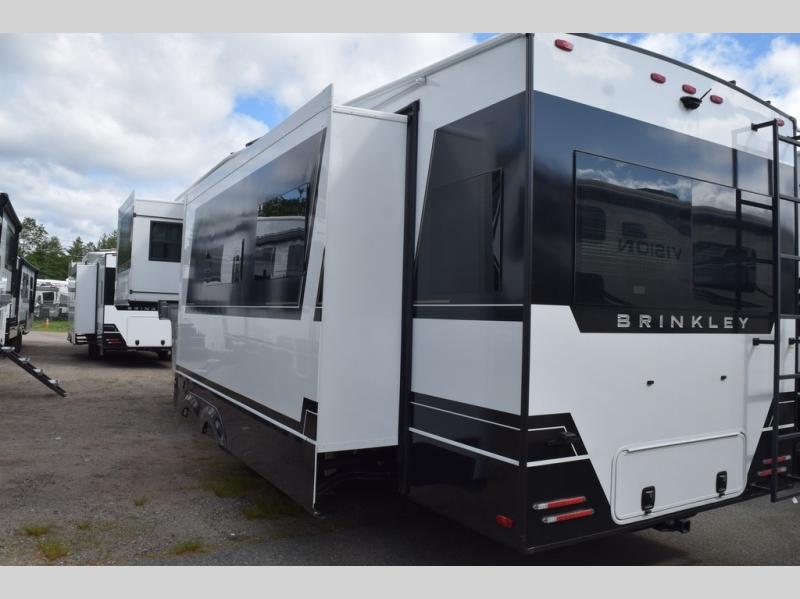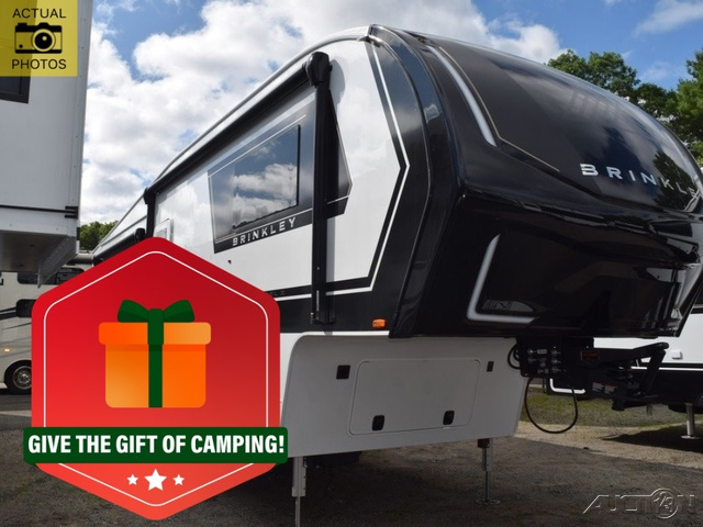 The Brinkley mid-profile Model Z fifth wheels bring you clean lines and an upscale look with plenty of style and exciting new features like the industry first brass plumbing connections. These units also feature an automotive grade front cap, plenty of exterior storage, dual exterior hot and cold showers, and wide stance leveling jacks for easy set up. Residential frameless windows provide a clean look and beautiful views, and ample electrical outlets and 6 USB/USB-C outlets allow all of your electronics and appliances to easily be used and charged.