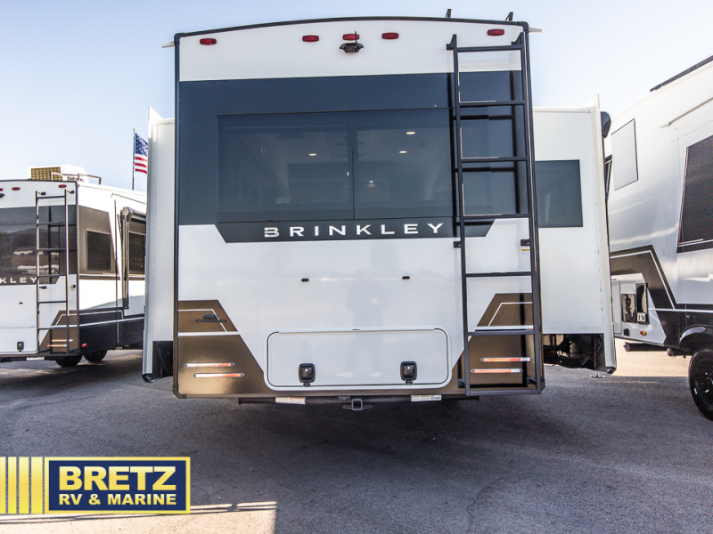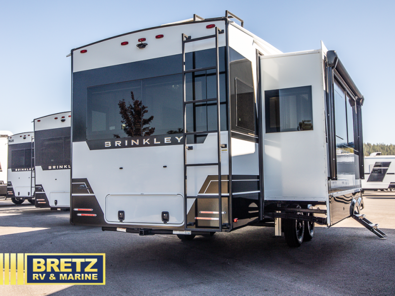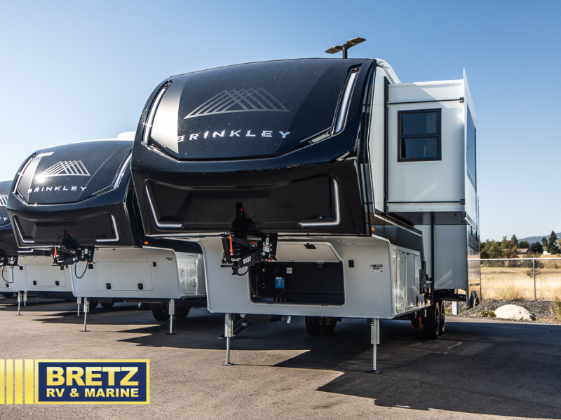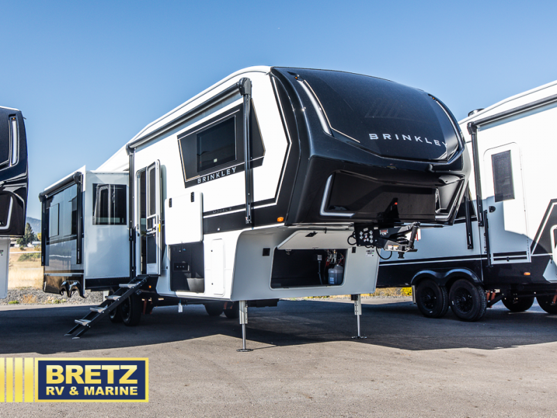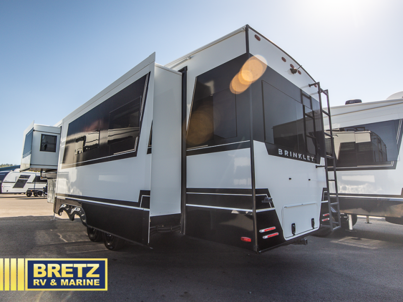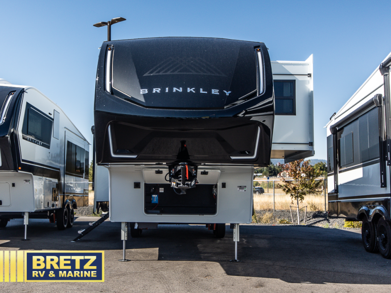 The Brinkley mid-profile Model Z fifth wheels bring you clean lines and an upscale look with plenty of style and exciting new features like the industry first brass plumbing connections. These units also feature an automotive grade front cap, plenty of exterior storage, dual exterior hot and cold showers, and wide stance leveling jacks for easy set up. Residential frameless windows provide a clean look and beautiful views, and ample electrical outlets and 6 USB/USB-C outlets allow all of your electronics and appliances to easily be used and charged.