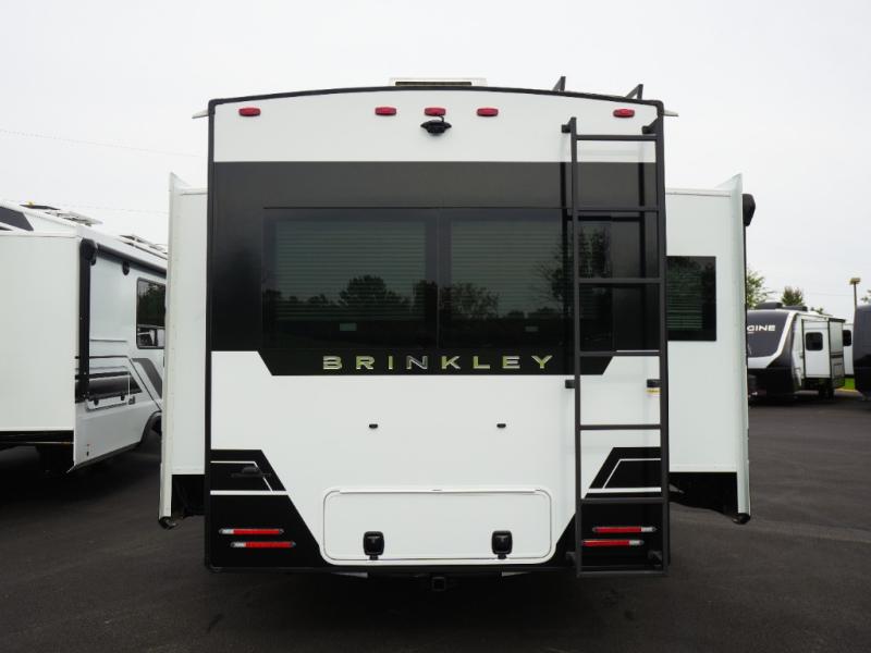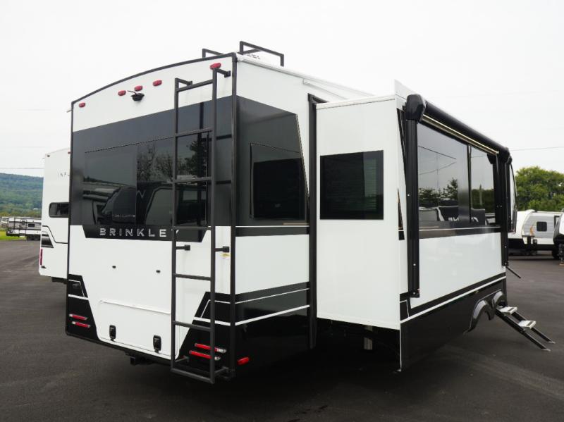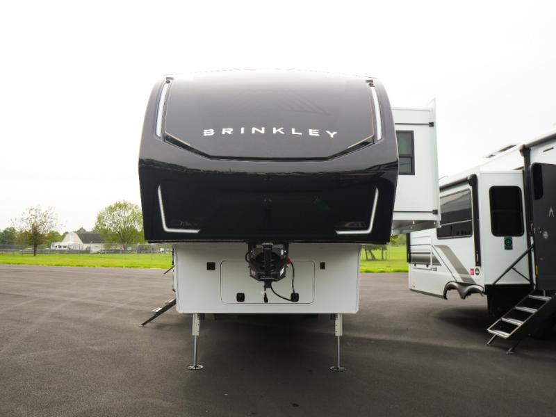 The Brinkley mid-profile Model Z fifth wheels bring you clean lines and an upscale look with plenty of style and exciting new features like the industry first brass plumbing connections. These units also feature an automotive grade front cap, plenty of exterior storage, dual exterior hot and cold showers, and wide stance leveling jacks for easy set up. Residential frameless windows provide a clean look and beautiful views, and ample electrical outlets and 6 USB/USB-C outlets allow all of your electronics and appliances to easily be used and charged.