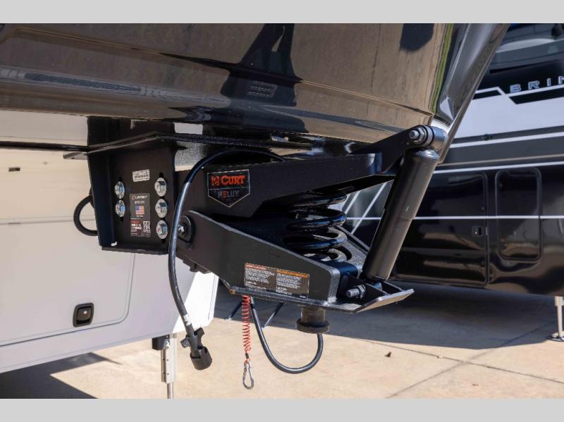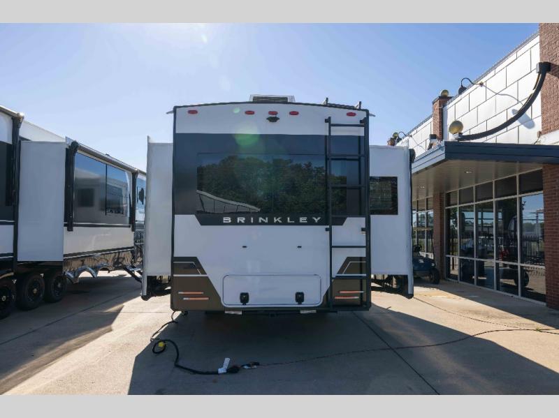 The Brinkley mid-profile Model Z fifth wheels bring you clean lines and an upscale look with plenty of style and exciting new features like the industry first brass plumbing connections. These units also feature an automotive grade front cap, plenty of exterior storage, dual exterior hot and cold showers, and wide stance leveling jacks for easy set up. Residential frameless windows provide a clean look and beautiful views, and ample electrical outlets and 6 USB/USB-C outlets allow all of your electronics and appliances to easily be used and charged.