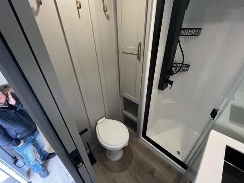 The Brinkley mid-profile Model Z fifth wheels bring you clean lines and an upscale look with plenty of style and exciting new features like the industry first brass plumbing connections. These units also feature an automotive grade front cap, plenty of exterior storage, dual exterior hot and cold showers, and wide stance leveling jacks for easy set up. Residential frameless windows provide a clean look and beautiful views, and ample electrical outlets and 6 USB/USB-C outlets allow all of your electronics and appliances to easily be used and charged.