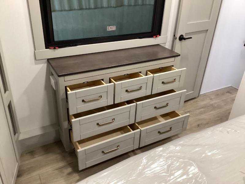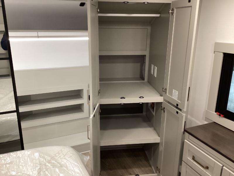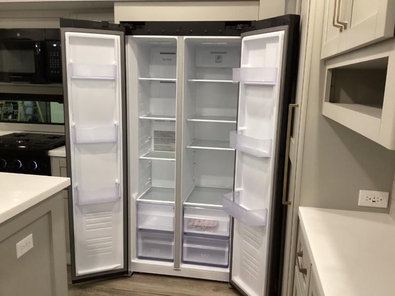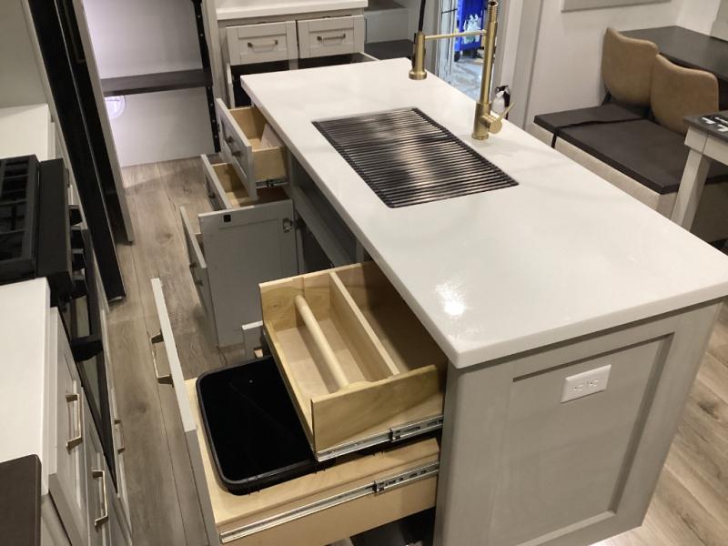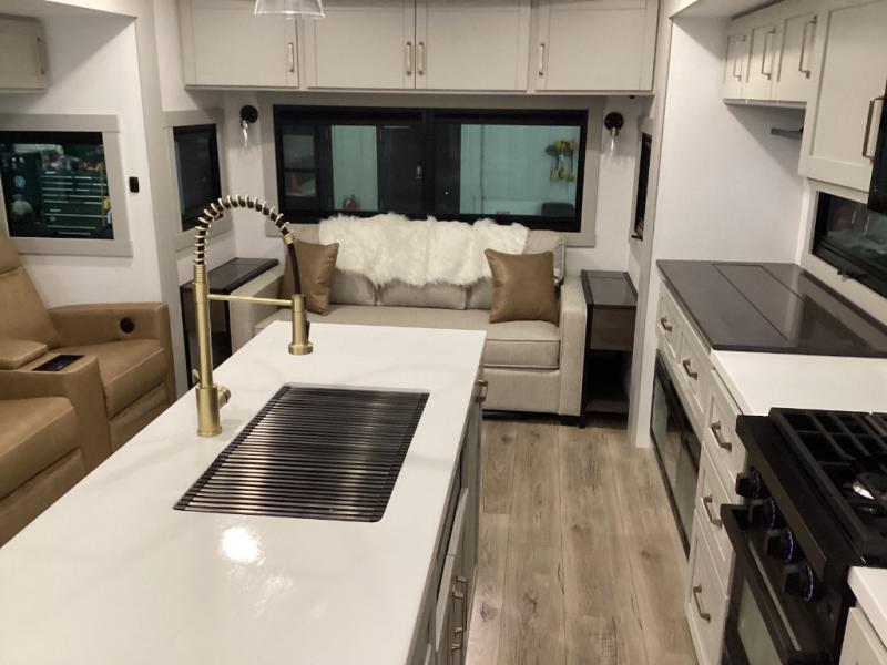 This Model Z luxury fifth wheel is bright and modern on the inside, with loads of amenities that will have you dreaming of your next trip!