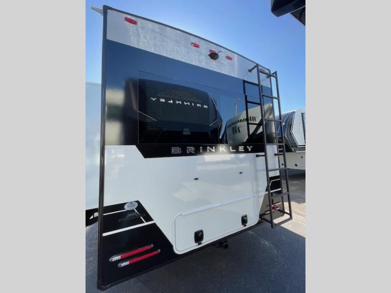 The Brinkley mid-profile Model Z fifth wheels bring you clean lines and an upscale look with plenty of style and exciting new features like the industry first brass plumbing connections. These units also feature an automotive grade front cap, plenty of exterior storage, dual exterior hot and cold showers, and wide stance leveling jacks for easy set up. Residential frameless windows provide a clean look and beautiful views, and ample electrical outlets and 6 USB/USB-C outlets allow all of your electronics and appliances to easily be used and charged.