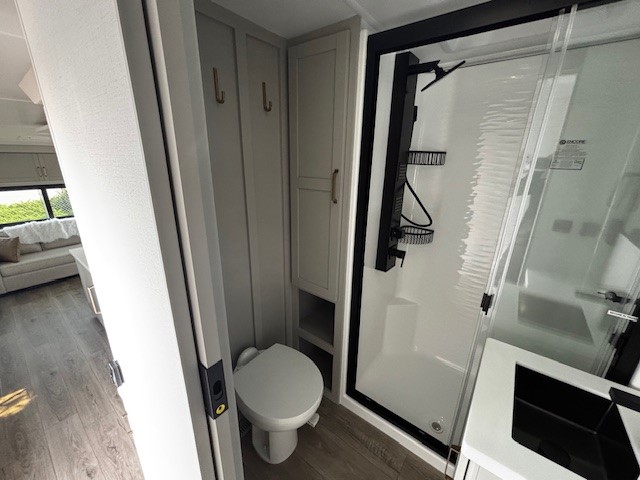 The Brinkley mid-profile Model Z fifth wheels bring you clean lines and an upscale look with plenty of style and exciting new features like the industry first brass plumbing connections. These units also feature an automotive grade front cap, plenty of exterior storage, dual exterior hot and cold showers, and wide stance leveling jacks for easy set up. Residential frameless windows provide a clean look and beautiful views, and ample electrical outlets and 6 USB/USB-C outlets allow all of your electronics and appliances to easily be used and charged.