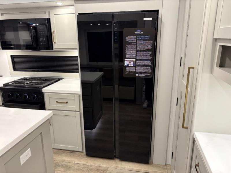 The Brinkley mid-profile Model Z fifth wheels bring you clean lines and an upscale look with plenty of style and exciting new features like the industry first brass plumbing connections. These units also feature an automotive grade front cap, plenty of exterior storage, dual exterior hot and cold showers, and wide stance leveling jacks for easy set up. Residential frameless windows provide a clean look and beautiful views, and ample electrical outlets and 6 USB/USB-C outlets allow all of your electronics and appliances to easily be used and charged.