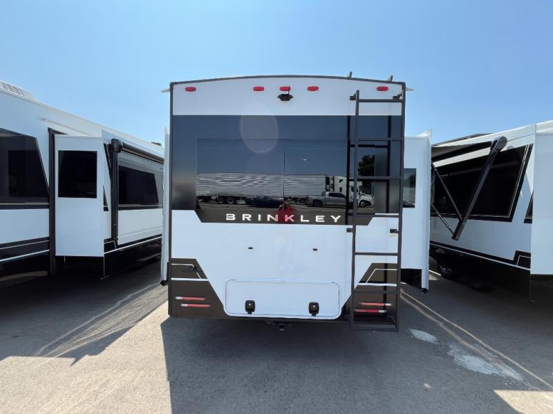 The Brinkley mid-profile Model Z fifth wheels bring you clean lines and an upscale look with plenty of style and exciting new features like the industry first brass plumbing connections. These units also feature an automotive grade front cap, plenty of exterior storage, dual exterior hot and cold showers, and wide stance leveling jacks for easy set up. Residential frameless windows provide a clean look and beautiful views, and ample electrical outlets and 6 USB/USB-C outlets allow all of your electronics and appliances to easily be used and charged.