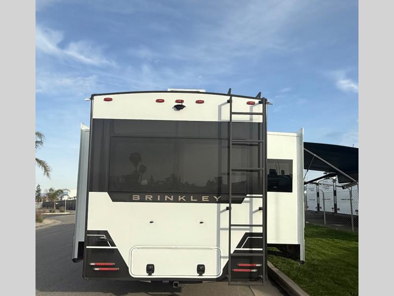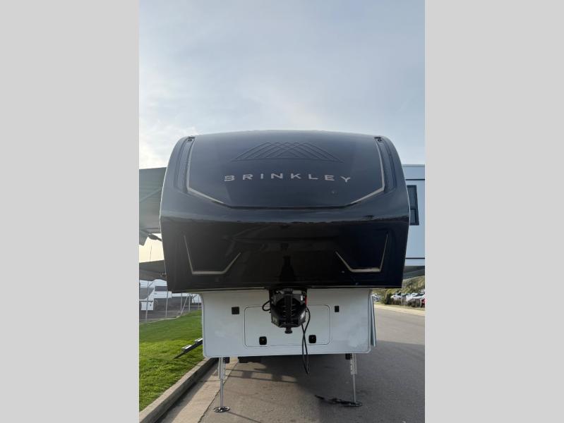 The Brinkley mid-profile Model Z fifth wheels bring you clean lines and an upscale look with plenty of style and exciting new features like the industry first brass plumbing connections. These units also feature an automotive grade front cap, plenty of exterior storage, dual exterior hot and cold showers, and wide stance leveling jacks for easy set up. Residential frameless windows provide a clean look and beautiful views, and ample electrical outlets and 6 USB/USB-C outlets allow all of your electronics and appliances to easily be used and charged.