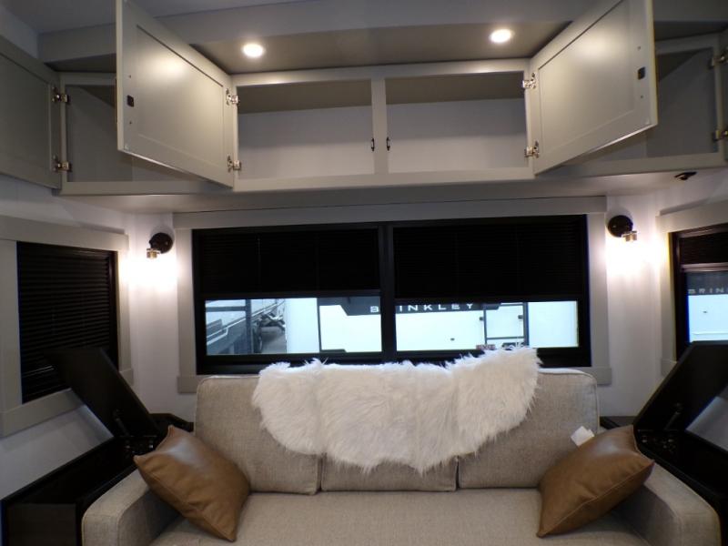 The Brinkley mid-profile Model Z fifth wheels bring you clean lines and an upscale look with plenty of style and exciting new features like the industry first brass plumbing connections. These units also feature an automotive grade front cap, plenty of exterior storage, dual exterior hot and cold showers, and wide stance leveling jacks for easy set up. Residential frameless windows provide a clean look and beautiful views, and ample electrical outlets and 6 USB/USB-C outlets allow all of your electronics and appliances to easily be used and charged.
