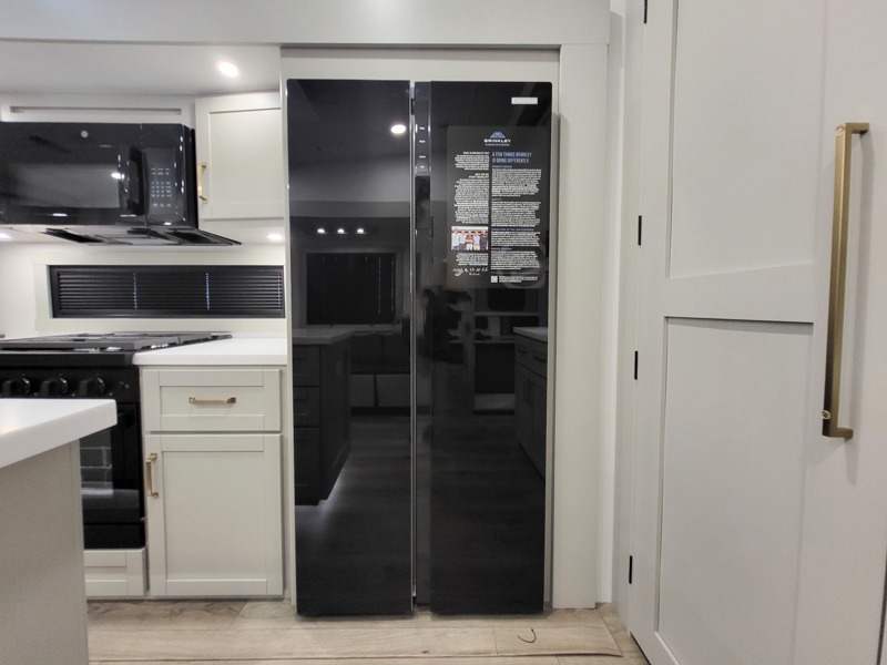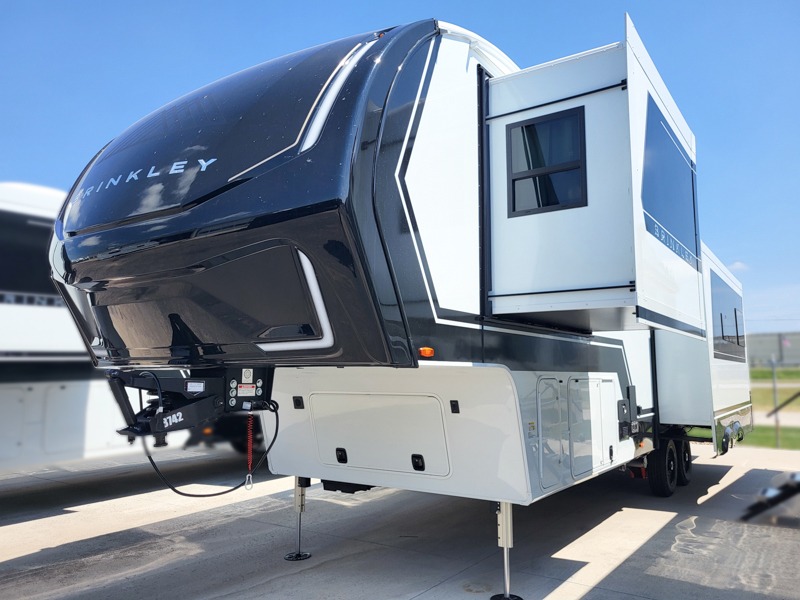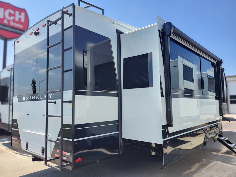 The Brinkley mid-profile Model Z fifth wheels bring you clean lines and an upscale look with plenty of style and exciting new features like the industry first brass plumbing connections. These units also feature an automotive grade front cap, plenty of exterior storage, dual exterior hot and cold showers, and wide stance leveling jacks for easy set up. Residential frameless windows provide a clean look and beautiful views, and ample electrical outlets and 6 USB/USB-C outlets allow all of your electronics and appliances to easily be used and charged.