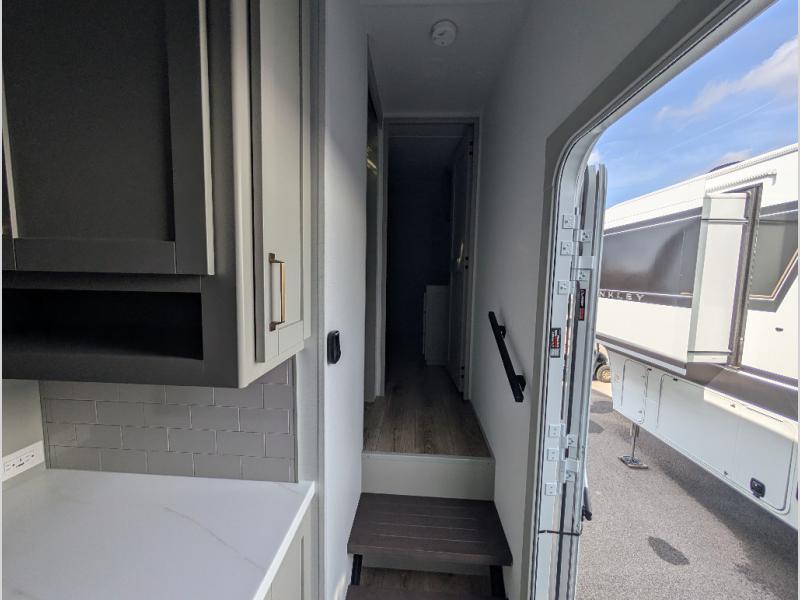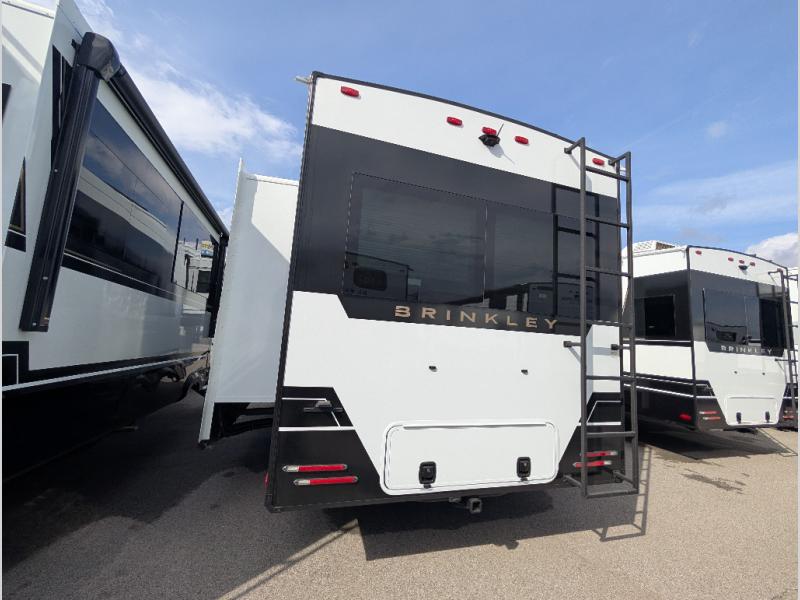 The Brinkley mid-profile Model Z fifth wheels bring you clean lines and an upscale look with plenty of style and exciting new features like the industry first brass plumbing connections. These units also feature an automotive grade front cap, plenty of exterior storage, dual exterior hot and cold showers, and wide stance leveling jacks for easy set up. Residential frameless windows provide a clean look and beautiful views, and ample electrical outlets and 6 USB/USB-C outlets allow all of your electronics and appliances to easily be used and charged.