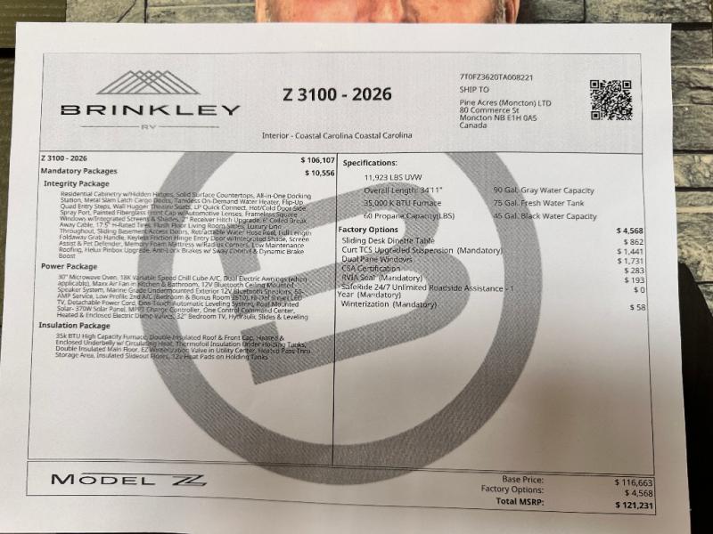 Due to manufacturer policy, we’re unable to publicly advertise prices below the M.S.R.P. on current model year Brinkley RVs. For our best available pricing, please call, text, or email our team — we’ll be happy to provide a personalized quote!