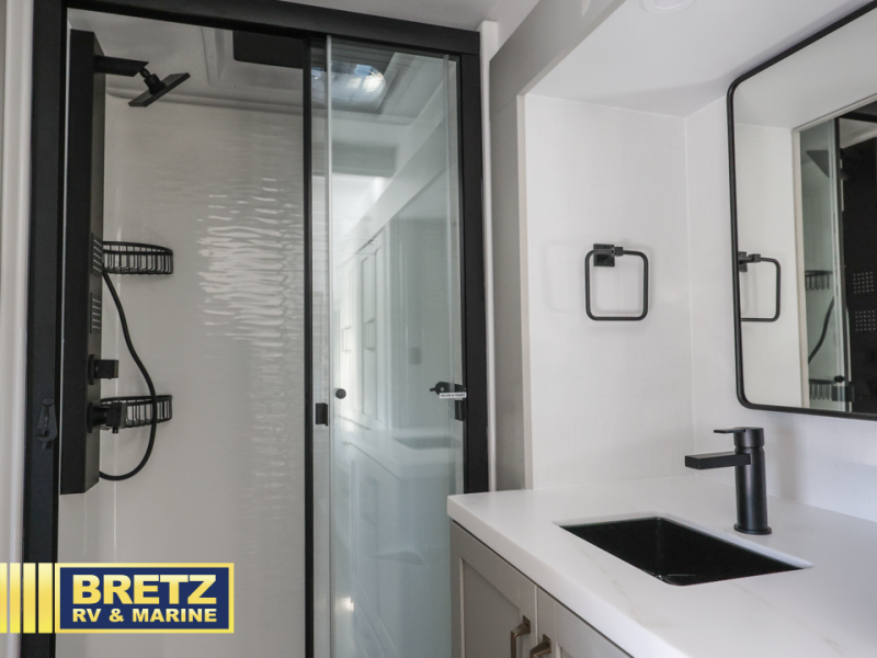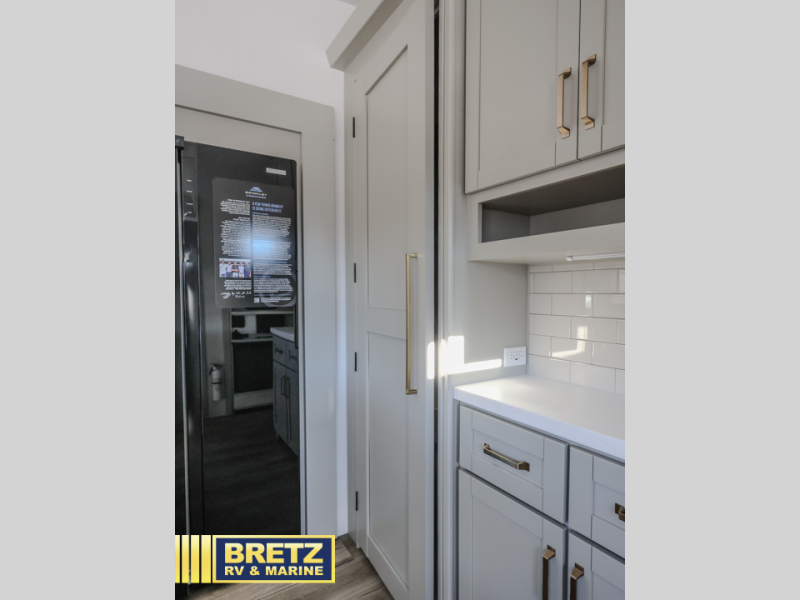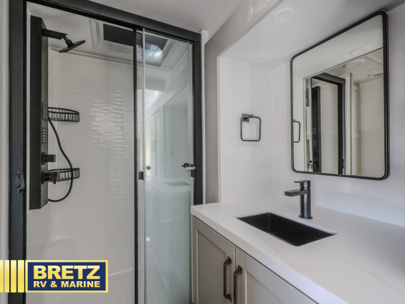 The Brinkley mid-profile Model Z fifth wheels bring you clean lines and an upscale look with plenty of style and exciting new features like the industry first brass plumbing connections. These units also feature an automotive grade front cap, plenty of exterior storage, exterior hot and cold showers, and wide stance leveling jacks for easy set up. Residential frameless windows provide a clean look and beautiful views, and ample electrical outlets and 6 USB/USB-C outlets allow all of your electronics and appliances to easily be used and charged.