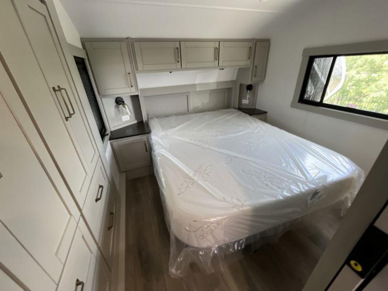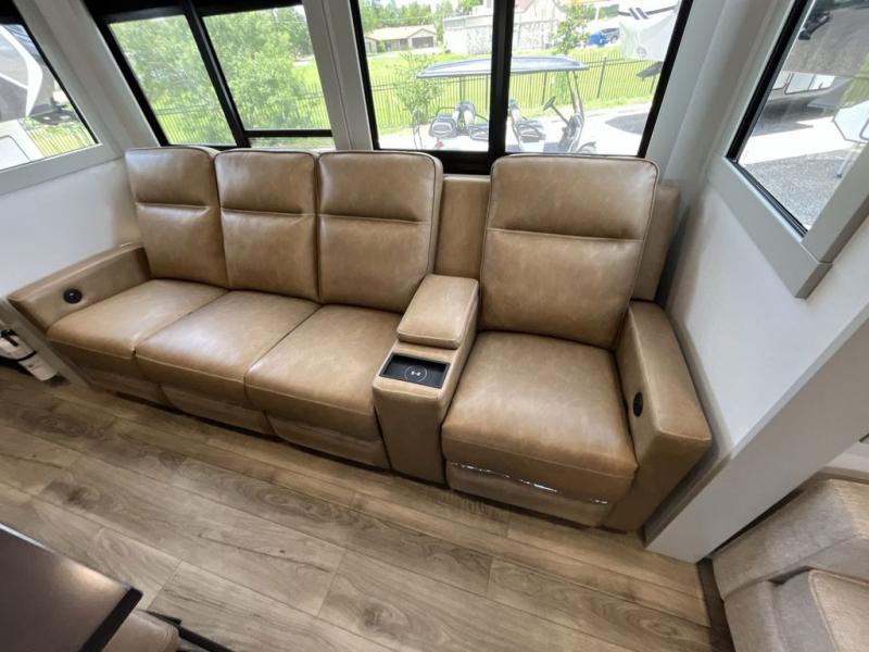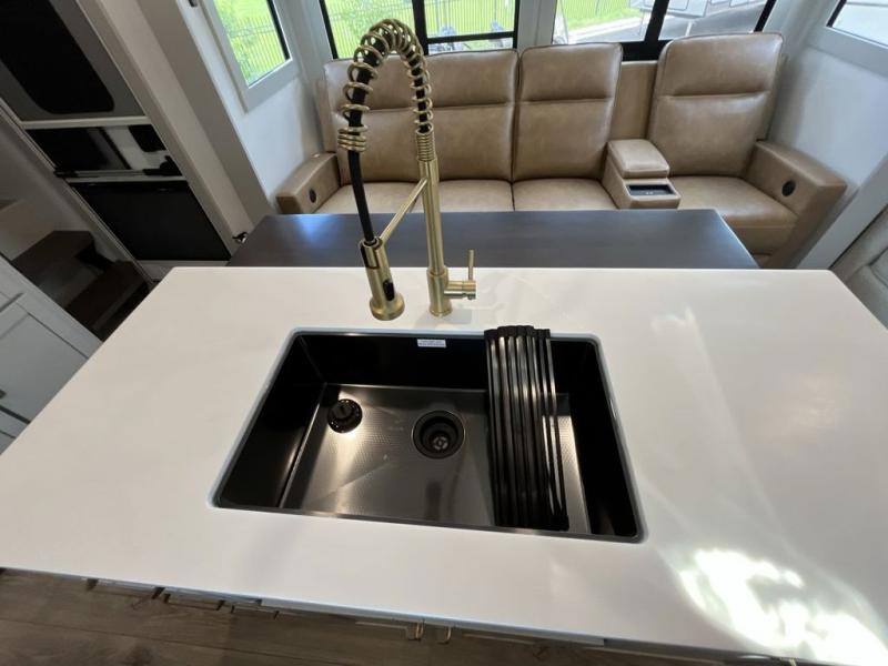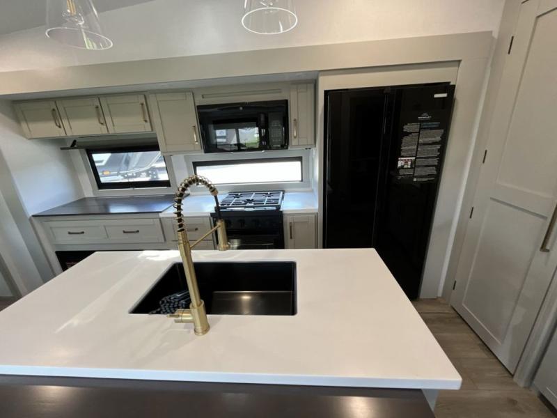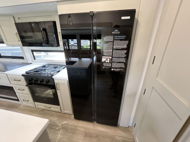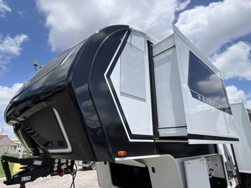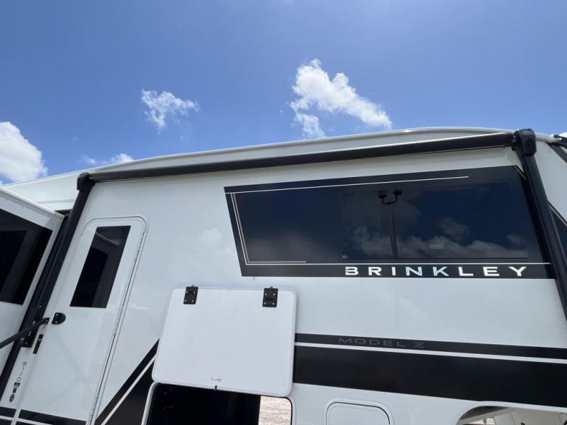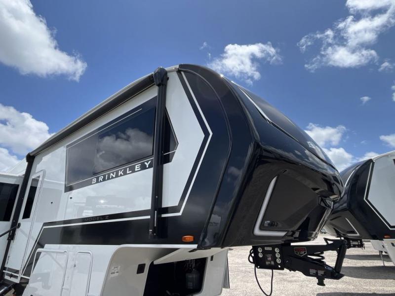 The Brinkley mid-profile Model Z fifth wheels bring you clean lines and an upscale look with plenty of style and exciting new features like the industry first brass plumbing connections. These units also feature an automotive grade front cap, plenty of exterior storage, exterior hot and cold showers, and wide stance leveling jacks for easy set up. Residential frameless windows provide a clean look and beautiful views, and ample electrical outlets and 6 USB/USB-C outlets allow all of your electronics and appliances to easily be used and charged.