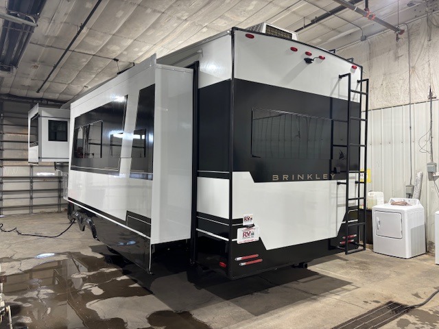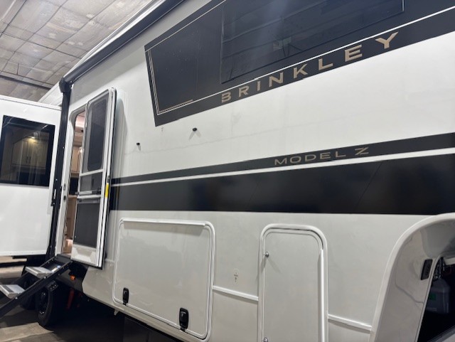 The Brinkley mid-profile Model Z fifth wheels bring you clean lines and an upscale look with plenty of style and exciting new features like the industry first brass plumbing connections. These units also feature an automotive grade front cap, plenty of exterior storage, exterior hot and cold showers, and wide stance leveling jacks for easy set up. Residential frameless windows provide a clean look and beautiful views, and ample electrical outlets and 6 USB/USB-C outlets allow all of your electronics and appliances to easily be used and charged.