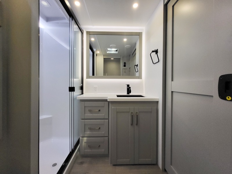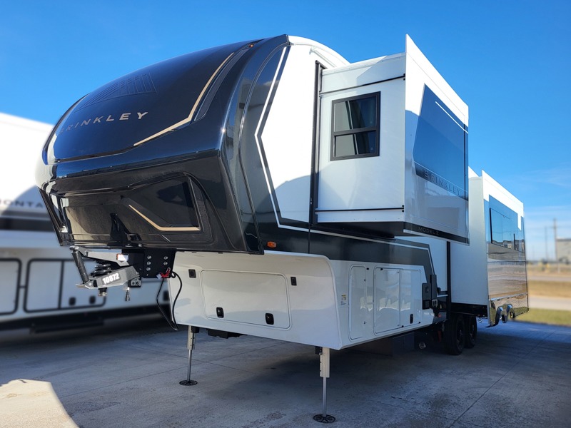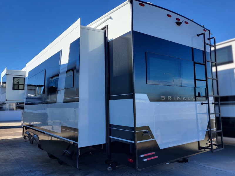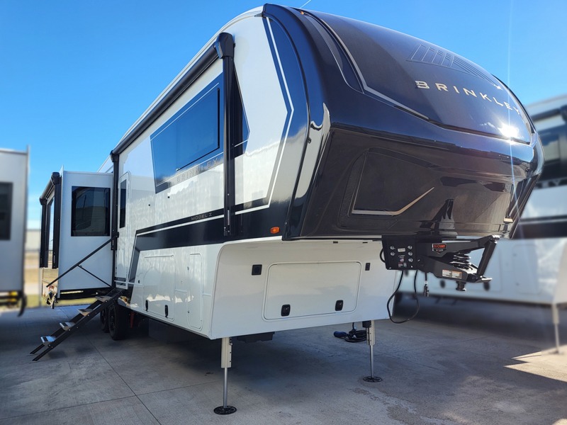 The Brinkley mid-profile Model Z fifth wheels bring you clean lines and an upscale look with plenty of style and exciting new features like the industry first brass plumbing connections. These units also feature an automotive grade front cap, plenty of exterior storage, exterior hot and cold showers, and wide stance leveling jacks for easy set up. Residential frameless windows provide a clean look and beautiful views, and ample electrical outlets and 6 USB/USB-C outlets allow all of your electronics and appliances to easily be used and charged.