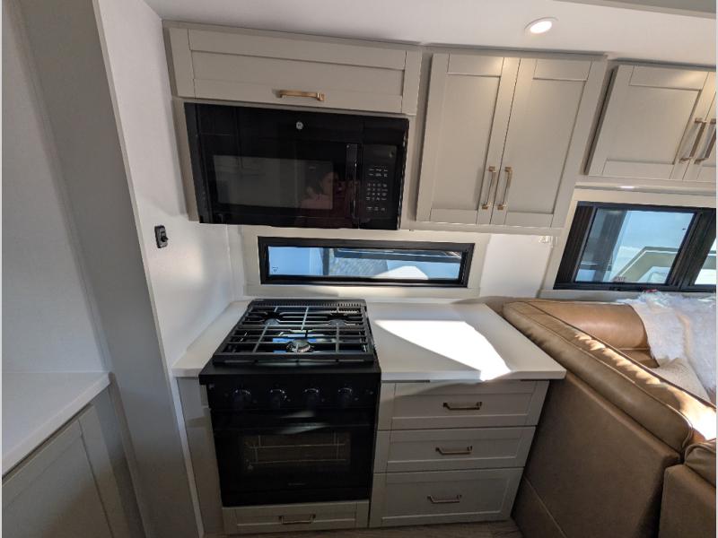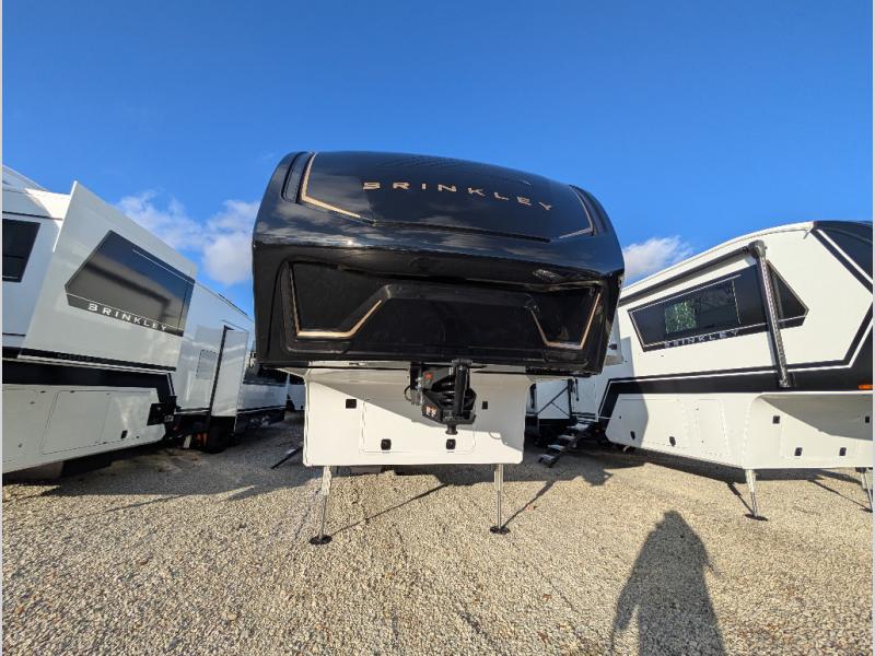 The Brinkley mid-profile Model Z fifth wheels bring you clean lines and an upscale look with plenty of style and exciting new features like the industry first brass plumbing connections. These units also feature an automotive grade front cap, plenty of exterior storage, exterior hot and cold showers, and wide stance leveling jacks for easy set up. Residential frameless windows provide a clean look and beautiful views, and ample electrical outlets and 6 USB/USB-C outlets allow all of your electronics and appliances to easily be used and charged.