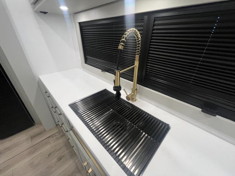 The Brinkley mid-profile Model Z fifth wheels bring you clean lines and an upscale look with plenty of style and exciting new features like the industry first brass plumbing connections. These units also feature an automotive grade front cap, plenty of exterior storage, exterior hot and cold showers, and wide stance leveling jacks for easy set up. Residential frameless windows provide a clean look and beautiful views, and ample electrical outlets and 6 USB/USB-C outlets allow all of your electronics and appliances to easily be used and charged.