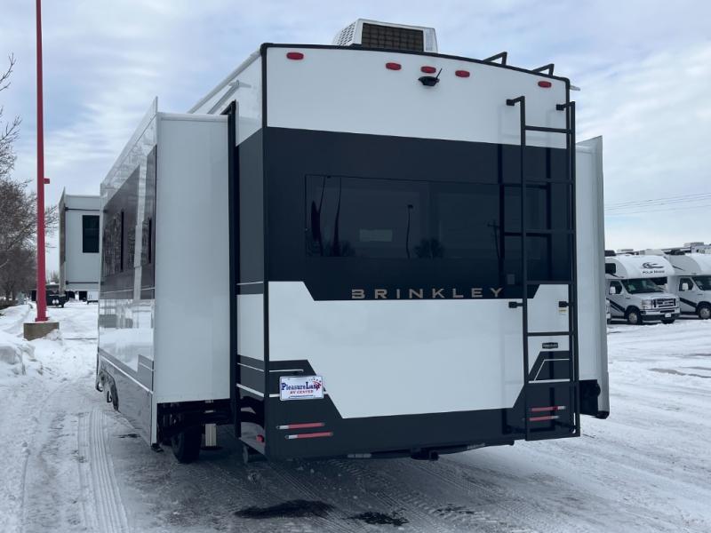 The Brinkley mid-profile Model Z fifth wheels bring you clean lines and an upscale look with plenty of style and exciting new features like the industry first brass plumbing connections. These units also feature an automotive grade front cap, plenty of exterior storage, exterior hot and cold showers, and wide stance leveling jacks for easy set up. Residential frameless windows provide a clean look and beautiful views, and ample electrical outlets and 6 USB/USB-C outlets allow all of your electronics and appliances to easily be used and charged.