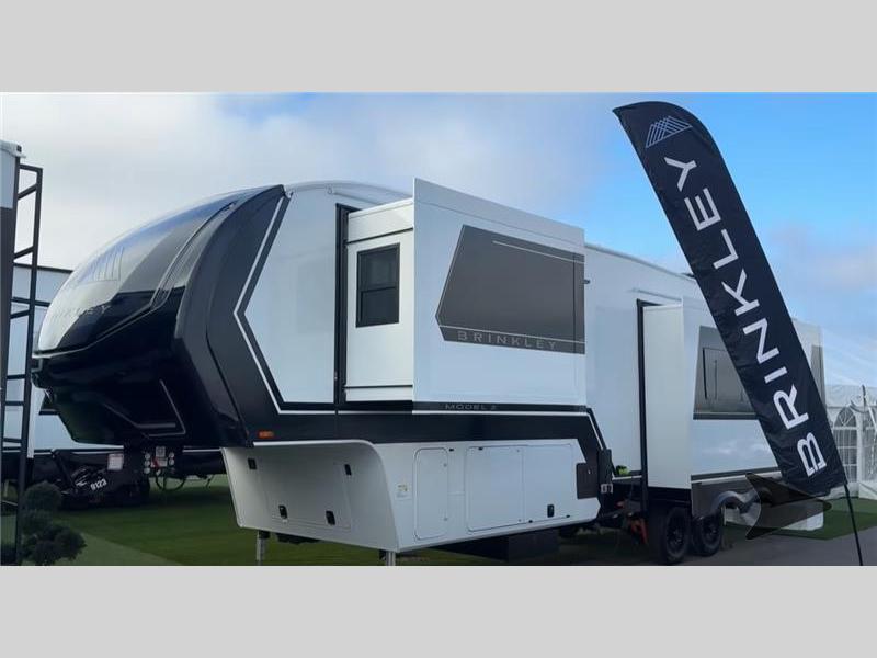 The Brinkley mid-profile Model Z fifth wheels bring you clean lines and an upscale look with plenty of style and exciting new features like the industry first brass plumbing connections. These units also feature an automotive grade front cap, plenty of exterior storage, exterior hot and cold showers, and wide stance leveling jacks for easy set up. Residential frameless windows provide a clean look and beautiful views, and ample electrical outlets and 6 USB/USB-C outlets allow all of your electronics and appliances to easily be used and charged.