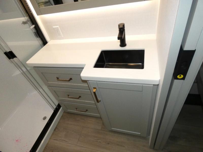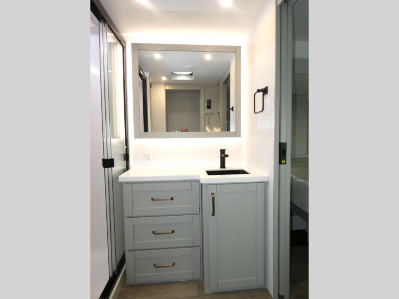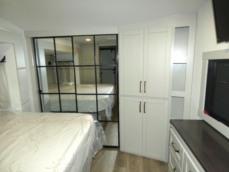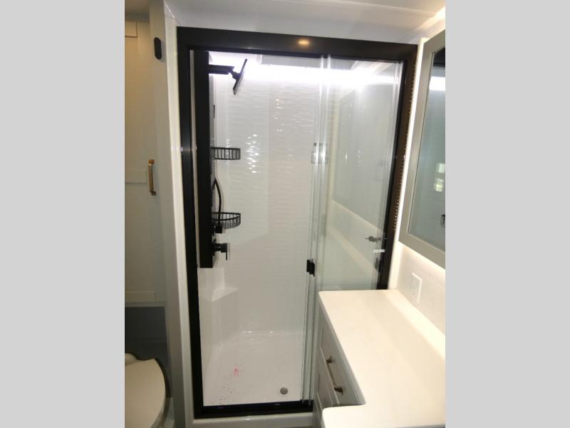 The Brinkley mid-profile Model Z fifth wheels bring you clean lines and an upscale look with plenty of style and exciting new features like the industry first brass plumbing connections. These units also feature an automotive grade front cap, plenty of exterior storage, exterior hot and cold showers, and wide stance leveling jacks for easy set up. Residential frameless windows provide a clean look and beautiful views, and ample electrical outlets and 6 USB/USB-C outlets allow all of your electronics and appliances to easily be used and charged.