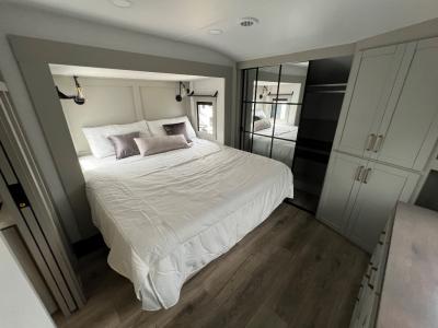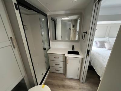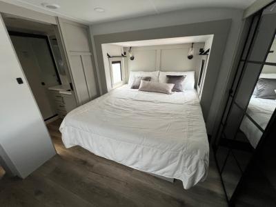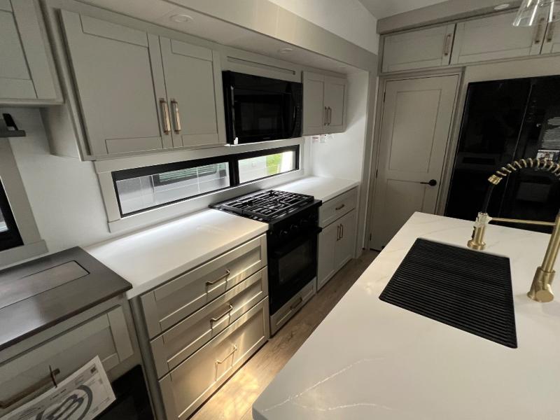 The Brinkley mid-profile Model Z fifth wheels bring you clean lines and an upscale look with plenty of style and exciting new features like the industry first brass plumbing connections. These units also feature an automotive grade front cap, plenty of exterior storage, exterior hot and cold showers, and wide stance leveling jacks for easy set up. Residential frameless windows provide a clean look and beautiful views, and ample electrical outlets and 6 USB/USB-C outlets allow all of your electronics and appliances to easily be used and charged.