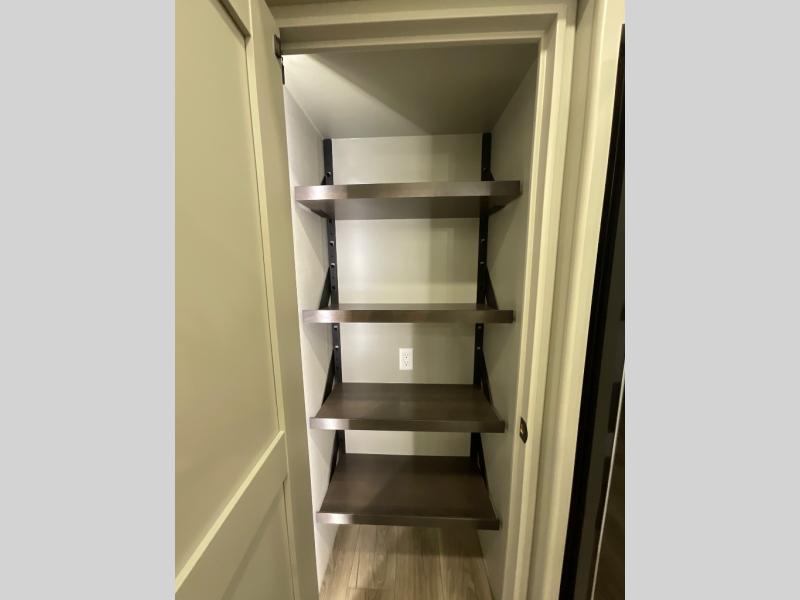 The Brinkley mid-profile Model Z fifth wheels bring you clean lines and an upscale look with plenty of style and exciting new features like the industry first brass plumbing connections. These units also feature an automotive grade front cap, plenty of exterior storage, exterior hot and cold showers, and wide stance leveling jacks for easy set up. Residential frameless windows provide a clean look and beautiful views, and ample electrical outlets and 6 USB/USB-C outlets allow all of your electronics and appliances to easily be used and charged.
