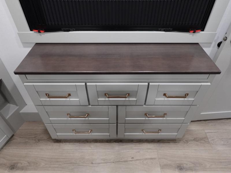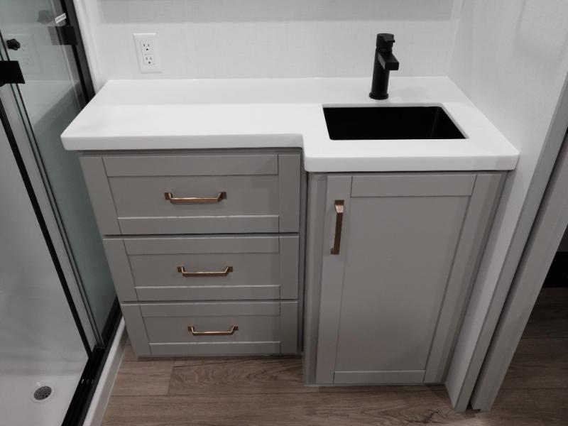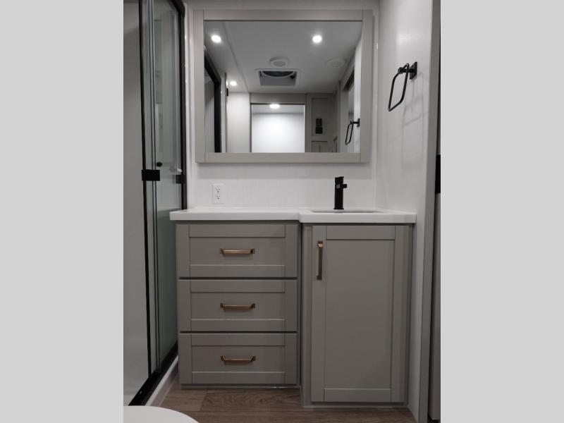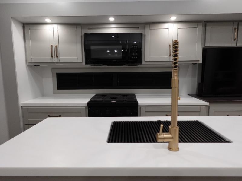 The Brinkley mid-profile Model Z fifth wheels bring you clean lines and an upscale look with plenty of style and exciting new features like the industry first brass plumbing connections. These units also feature an automotive grade front cap, plenty of exterior storage, exterior hot and cold showers, and wide stance leveling jacks for easy set up. Residential frameless windows provide a clean look and beautiful views, and ample electrical outlets and 6 USB/USB-C outlets allow all of your electronics and appliances to easily be used and charged.