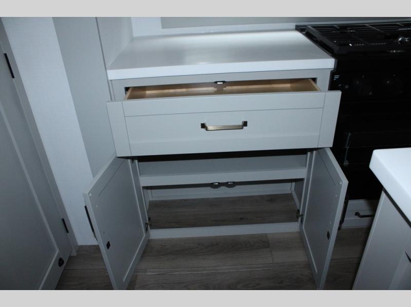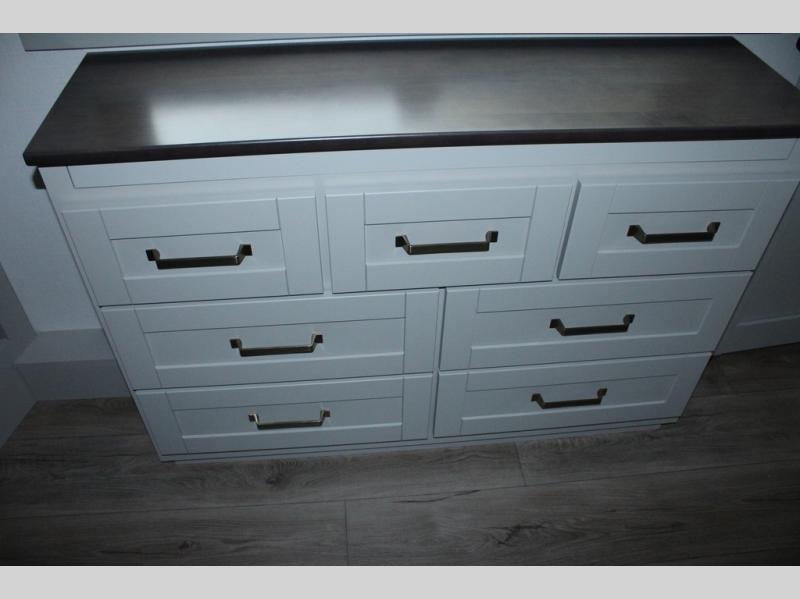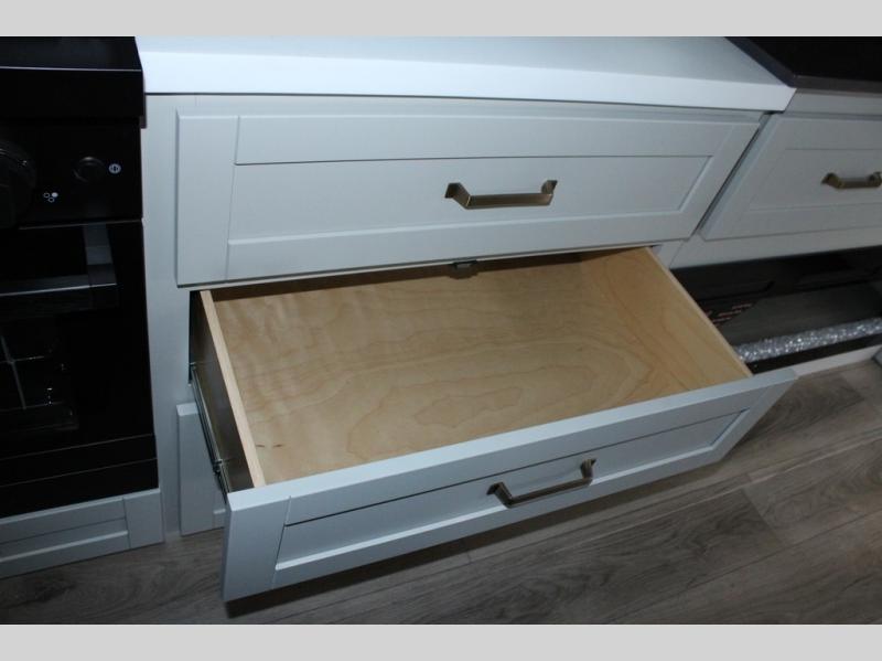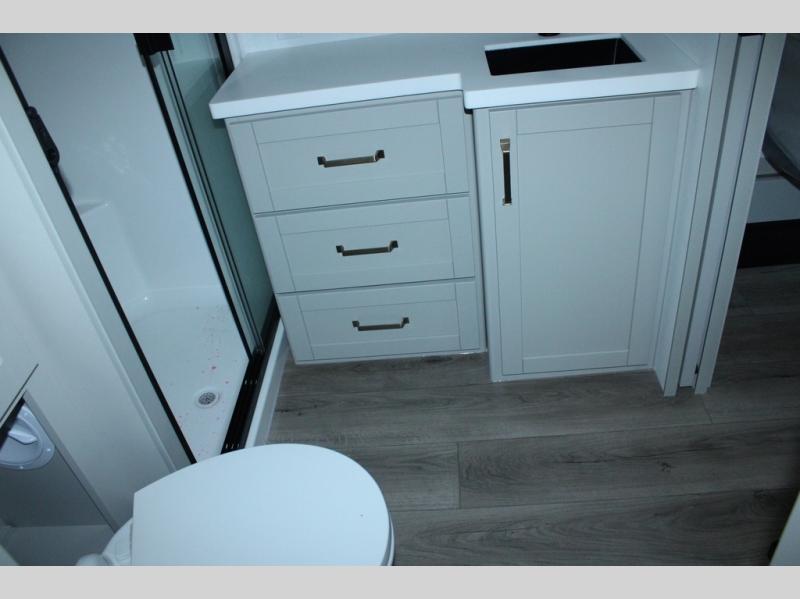 The Brinkley mid-profile Model Z fifth wheels bring you clean lines and an upscale look with plenty of style and exciting new features like the industry first brass plumbing connections. These units also feature an automotive grade front cap, plenty of exterior storage, exterior hot and cold showers, and wide stance leveling jacks for easy set up. Residential frameless windows provide a clean look and beautiful views, and ample electrical outlets and 6 USB/USB-C outlets allow all of your electronics and appliances to easily be used and charged.