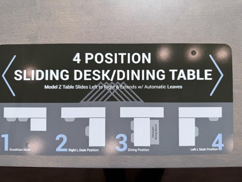 - Sliding desk/dining table for flexible use and workspace options