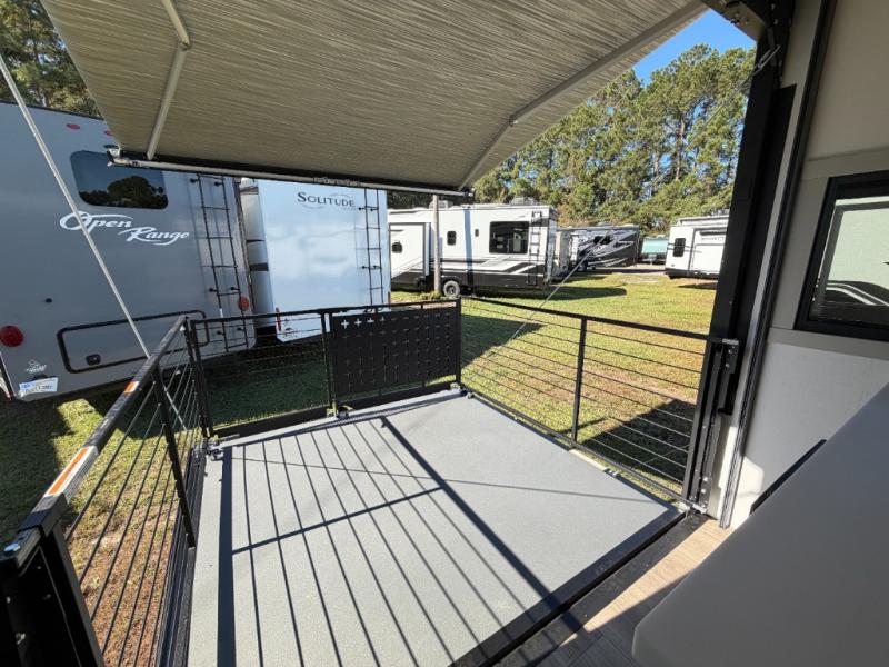 - Dual side awnings plus rear patio with awning for expanded outdoor living